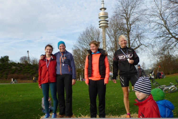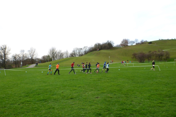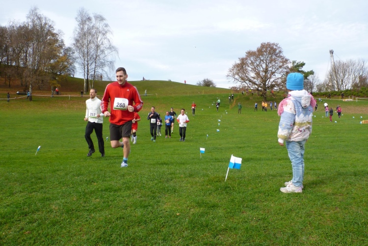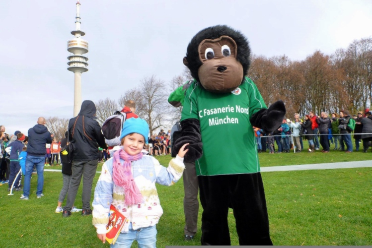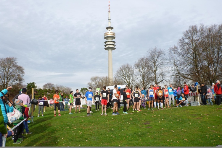 Der Förderverein Leichtathletik & Events München als Veranstalter hat gegenüber 2014 einige Änderungen vorgenommen und erwartet dadurch rund 300 Teilnehmer. Insgesamt werden sieben Rennen auf zwei verschieden langen Runden ausgetragen. Leider kann ich keine Bilder liefern vom ersten Rennen, wo Läufer in Dirndl und Lederhosen barfuß unterwegs waren. Wir können nur noch einige Sportler sehen, die ihre Auszeichnung, ein Lebkuchenherz in Fußform, stolz umhertragen. Drei Rennen sind dem Nachwuchs vorbehalten, es ist sogar eine Schulmeisterschaft im Crosslauf ausgeschrieben.