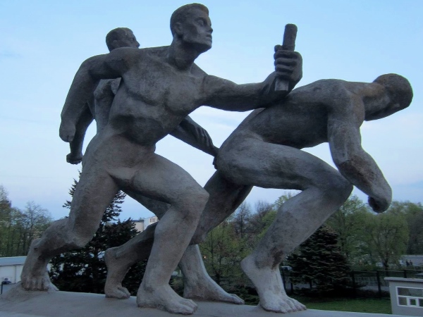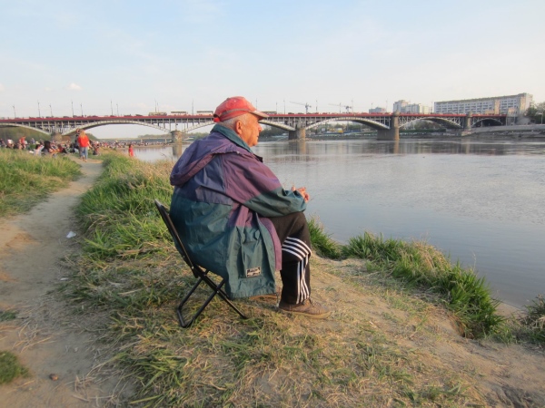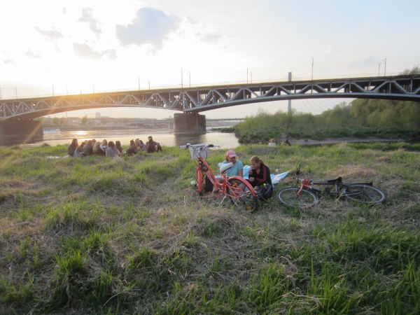 Am Nachmittag findet rund um das Stadion ein Charity-Run über 4,6 km statt, am Abend ist ein Nightskating am Programm. Ich spaziere zur Weichsel hinüber, wo sich am sonnigen Ostufer hunderte Jugendliche eingefunden haben, die mit Getränkeflaschen beladen, Party machen wollen und wohl den ganzen Samstagabend bis spät in die Nacht hinein die grüne Landschaft beleben werden.