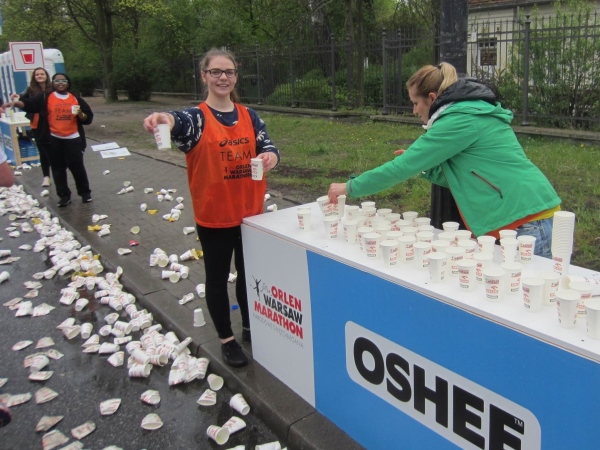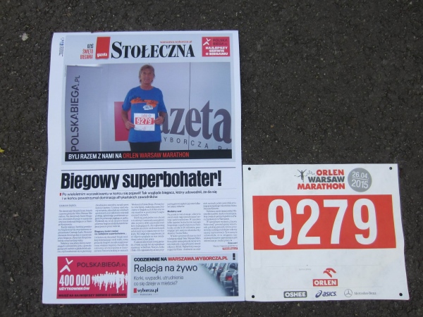 Das Starterpaket umfasst neben der Startnummer mit integriertem Chip ein schickes Asics-Funktionsshirt in den Nationalfarben Polens mit rotem Untergrund und weißer Schrift, eine Asics-Laufkappe, einen Gutschein von 100 Zloty zum Bezug von Sportartikeln, eine Flasche Wasser und ein Isogetränk der Marke OSHEE. Wenn ich daran denke, dass man in Wien für das Shirt 30 Euro extra bezahlt und ich deshalb auch auf das Shirt zum Preis von 29 Euro, das im Vorfeld des am 3. Mai stattfindenden Salzburg-Marathons angeboten wird, verzichten werde, sind mir solche Inklusiv-Packages willkommen. Aber im Grunde genommen brauche ich die Leibchen gar nicht, zu viele sind im Laufe von 14 Jahren seit meinem ersten Marathon auf Nimmerwiedersehen in Schränken abgelegt. Viele Baumwollshirts habe ich inzwischen entsorgt.