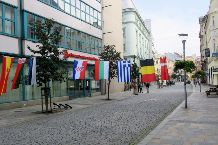 Am späten Nachmittag spaziere ich durch die Stadt zum Einkaufszentrum Forum Nová Karolina, wo man im zweiten Stock einige asiatische Essenslokale vorfindet. Ich habe einen Gusto auf Woknudeln mit Rindfleisch. Daneben gibt es eine Bäckerei, wo man sich allerlei böhmische Mehlspeisen besorgen kann. Die Leute tragen im EKZ Masken, offenbar wurde die Bestimmung verschärft, denn in den Wochen davor schienen sich vor allem junge Leute in Prag keine Gedanken über Corona zu machen. Aber in der Nacht zum Sonntag erlebe ich dann die pure Sorglosigkeit. Vom Hotelfenster aus sehe ich, wie betrunkene Jugendliche ohne Gesichtsschutz vor den Lokalen lärmen und sich hemmungslos besaufen. Man zündet Feuerwerkskörper, an Einschlafen ist nicht zu denken.