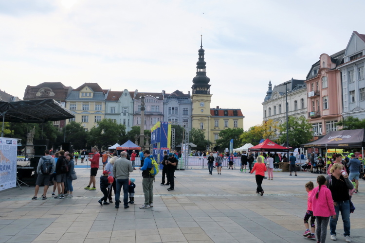 An diesem Sonntag ist dort viel los. Vor allem wegen des Laufsportevents, Läufer werden von Angehörigen begleitet, Zuschauer säumen den gepflasterten und mit Messingplatten ausgelegten Hauptplatz. Dieser ist mit seinen vielen Geschäften, Cafés und Restaurants das eigentliche Zentrum des Stadtteils Moravská Ostrava. Für Besucher interessant ist das Alte Rathaus mit dem Ostrauer Museum, das einem die Geschichte der Stadt näherbringen soll. Mitten auf dem Hauptplatz steht ein moderner Springbrunnen, der im Sommer für Kühlung sorgt. Vom Turm des Museumsgebäudes ertönt regelmäßig das Glockenspiel, an das man sich gewöhnt. Die Pestsäule und die Statue des hl. Florian bilden die Dominanten des Platzes. Im Mittelalter wurden hier Märkte abgehalten. Unter einem Laubengang, der zum Ostrauer Museum führt, steht die Statue des ersten tschechoslowakischen Präsidenten Tomáš Garrigue Masaryk (1850-1937.