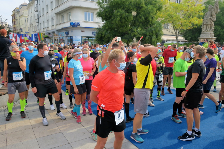 Das Menschenaufkommen ist groß, werden doch heute mehrere Laufbewerbe auf der gleichen Strecke durchgeführt. Der Viertel- und Halbmarathon werden mit dem Marathonbewerb (4 Runden zu 10.550 m) um 10 Uhr gestartet. Der Staffel- und Charity-Lauf folgen später.
