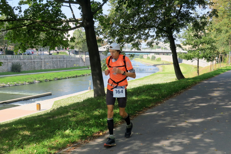 Tomáš Ulma lacht auch herüber, der „Bursche“ (Jg. 1964) hat mich in den letzten zwei Jahren bei allen Läufen immer abgehängt. Es gab aber eine Zeit, das lachte ich über ihn, denn sein Rückstand war enorm. Inzwischen zählt er zu den arriviertesten tschechischen Marathonsammlern und dürfte schon mehr als 700 Marathons und Ultras erlaufen haben. Mein insgeheimes Ziel heute ist es, Tomáš nach 2 Jahren wieder einmal ein paar Minuten abzunehmen.
