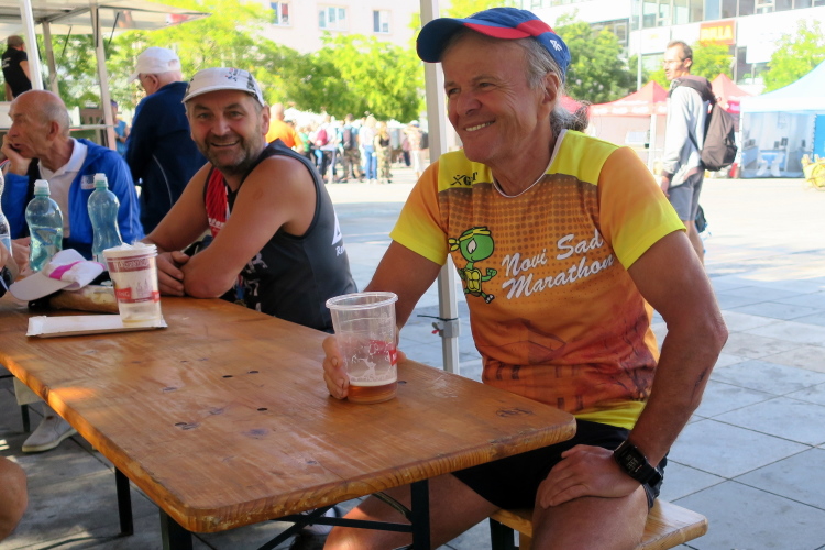 Ich erkenne etliche Kollegen aus Tschechien und den Nachbarstaaten. Einer freut sich sichtlich, als er mich erblickt: Drago Boroja, der Haudegen aus Novi Sad, der schon so oft als erfolgreicher 4h-Pacemaker in Serbien und bei polnischen Marathons fungierte. Drago lebt in der Nähe von Kattowitz und hat als Gärtner einen entspannenden Beruf.