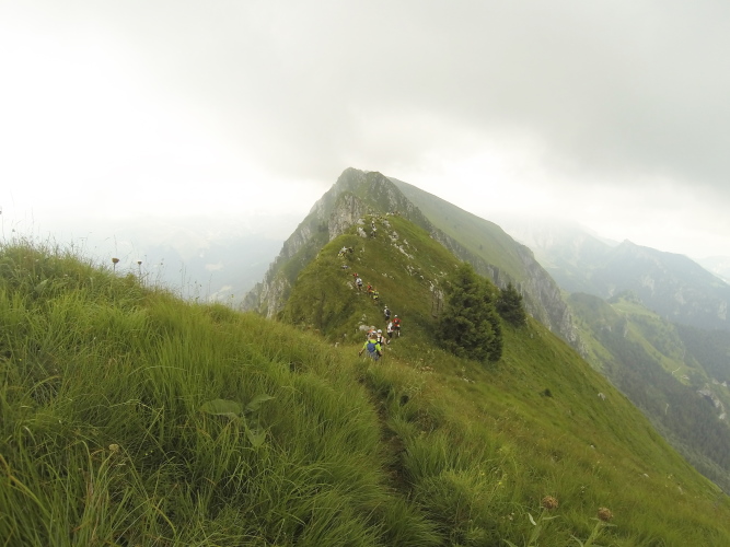 Doch es sei vorweg gesagt: wer einen der beiden Läufe auf die leichte Schulter nimmt, hat hier sehr schwer zu kämpfen. Die Trails in diesen südlichen Kalkstein Alpen sind rau, raff, straff und technisch sehr fordernd. Die Schneefallgrenze ist zum Ende Juli hier kein Problem, doch wechselt das Wetter sehr schnell von gut auf bösartig. Im letzten Jahr bereitete den Organisatoren und den Läufern die schnell einziehende Kaltfront mit viel Regen einiges an Problemen, so war es in diesem Jahr zu Beginn die Hitze mit 34° beim Start in Clusone und der Sturm am 2.Tag mit viel Regen, der viele leiden ließ.