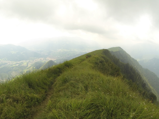 Die Trails im Orobie-Land bieten alles für die Hightec-Laufschuhe: Geröllfelder, Steinplatten, Wiesen- und Wurzelpfade, Schlammlöcher, Bachquerungen, kurze Absteige mit Seilpassagen, schmale Kammquerungen, Anstiege mit und ohne Serpentinen, Holper-Stolper-Wege. Aber war es nicht das, was ich suche. Stimmt – Grenzen ausloten in mitten einer famosen Bergwelt.