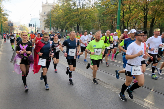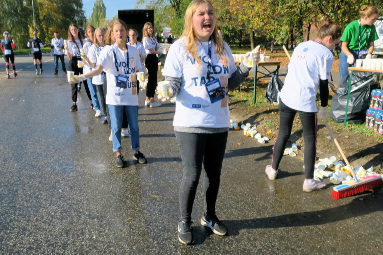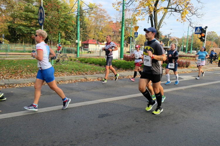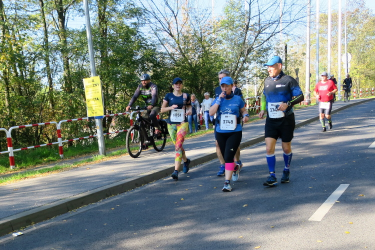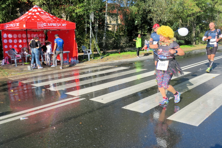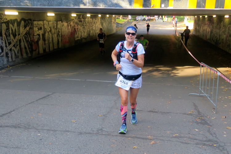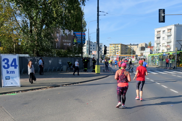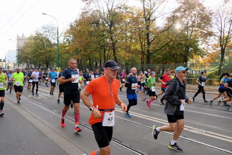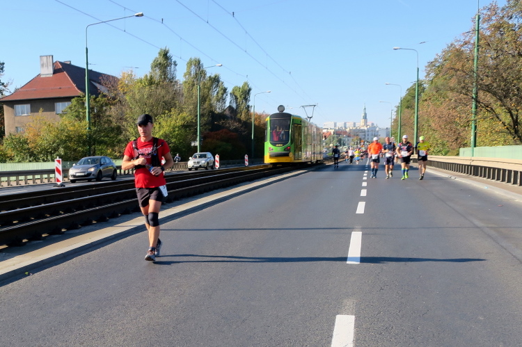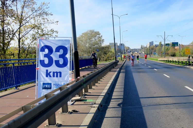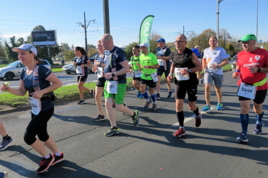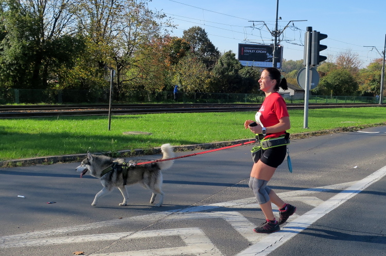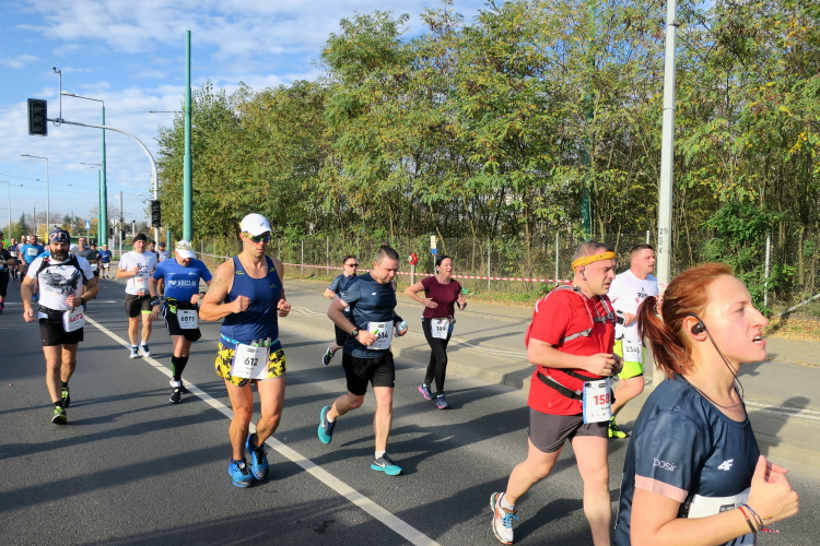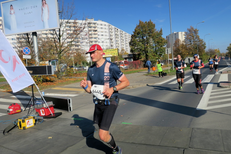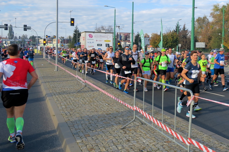 „Beat it!“ – die Drum School von Posen gibt das Tempo vor, nur können wir in der läuferischen Nachhut die Schlagzahl nicht halten. Die Strecke steigt an, auf den folgenden zwei Kilometern sind einige Höhenmeter zu überwinden. Roksanna kommt mit ihrem geliebten Vierbeiner von hinten nach, sie winkt mir zu. Der Hund bleibt immer wieder stehen, alleine würde sie wohl um die 4 Stunden finishen können.