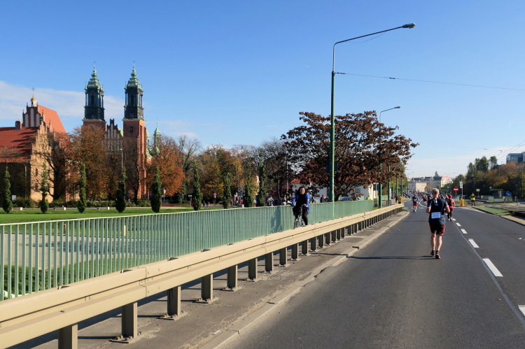 Sind erst einmal 17 Kilometer erreicht, ist die Halbdistanz nicht mehr weit entfernt, so ist es in meinem Kopf gespeichert. Auf einer Brücke über den Fluss Warthe, ein ca. 800 km langer Nebenfluss der Oder, erblickt man zur Linken den Posener Dom, der auf die Zeit der Gründung des ältesten polnischen Bistums im Jahre 968 zurückgeht und der geschichtlich für den Beginn der Christianisierung Polens steht. Er ist ein bedeutendes Wahrzeichen der Stadt.