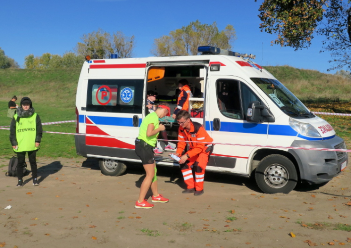 Als ich meinen Pastagutschein einlöse und mir einen Platz an einem Tisch suche, erblicke ich Roksanna Zymanska, Mitglied bei der gemeinnützigen Organisation Spartanie Dzieciom. Roksanna ist mit ihrem Huskie an der Leine wie ich in Kattowitz dabei gewesen – wir haben tapfer gegen den aufs Tempo drückenden Schlussfahrer im schwarzen Audi angekämpft. Morgen will sie wieder mit ihrem treuen Begleiter an den Start gehen. Sie ist wie ich im letzten Block E mit über 5 Stunden eingeteilt, bei 7.000 gemeldeten Startern könnte es so zu einer Startverzögerung von 10 Minuten kommen.