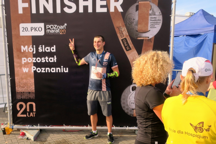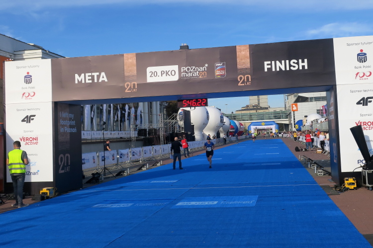 Die Ästhetik der fitten Mittstreiter, die Läuferinnen in ihren modischen Wettkampf-Outfits, die nach außen gekehrte innere Freude, an einem so großen Marathon wie hier und heute in Posen teilzunehmen, all das bleibt als geistige Momentaufnahme in der Erinnerung hängen und motiviert mich zugleich, auch ungeachtet beeinträchtigender Umstände zumindest noch eine Zeitlang mich mit den Langsamen zu messen. Wer weiß, vielleicht sieht die Welt in einem Jahr wieder anders aus und eine Stammzelleninjektion gibt dem Knie wieder neues Leben?