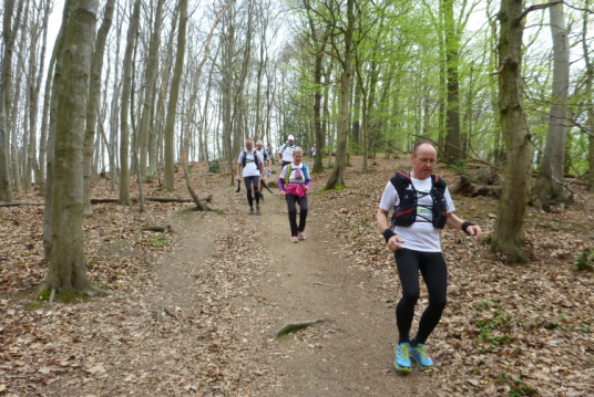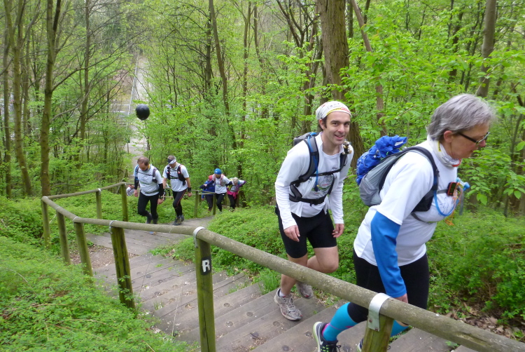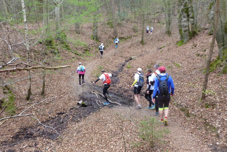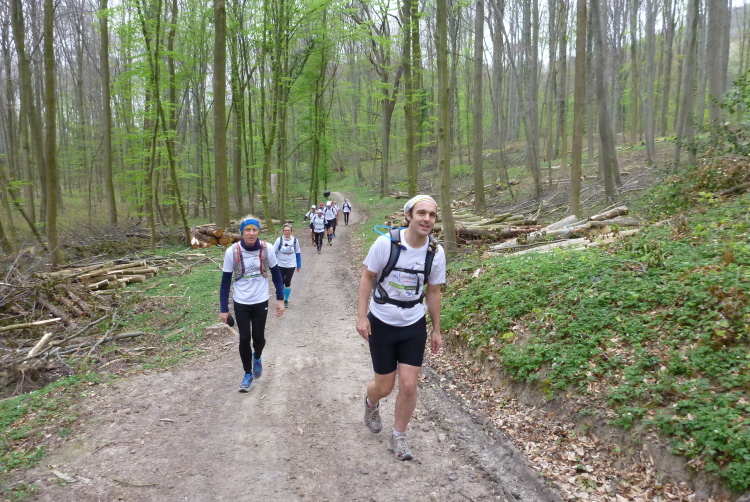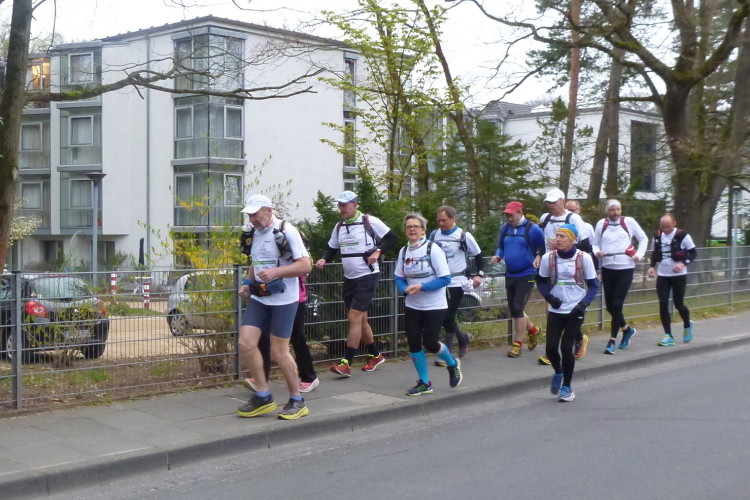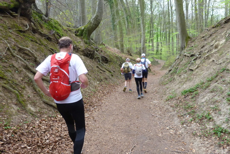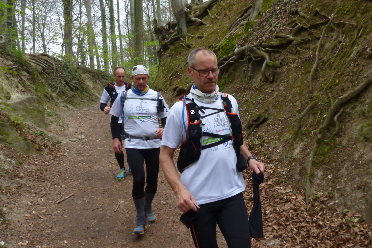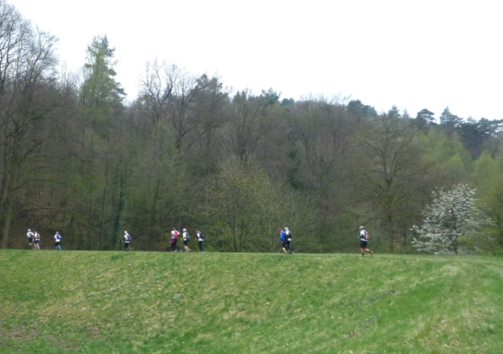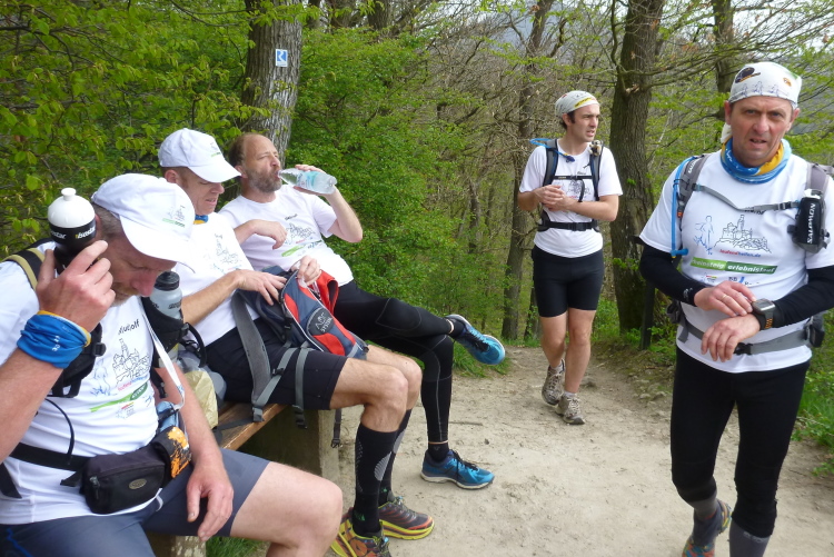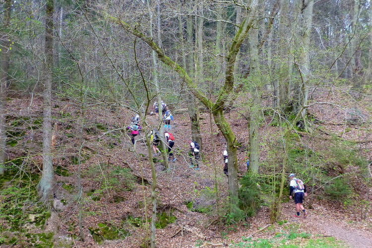 Trotzdem sollte die Veranstaltung aus sportlicher Sicht nicht unterschätzt werden. Die Laufgruppe hat wegen der Tagesläufer ein täglich wechselndes, großes Teilnehmerfeld mit stark unterschiedlichem individuellem Leistungsvermögen. Dies stellt die Gruppe im wahrsten Sinne des Wortes vor eine Zerreißprobe. Der Lösungsansatz ist, auch wenn nicht alle händchenhaltend durch den Wald laufen müssen, in Sicht- bzw. Rufkontakt zu bleiben. Denn wenn die Schnellen schnell vorlaufen, müssen sie ganz schnell auch schnell warten, weil den etwas Langsameren auch eine schnelle Pause gegönnt sein will, wenn sie die Schnellen wieder eingeholt haben. Und zur Vermeidung eines Stop and Go-Effektes gibt es die Möglichkeiten des Entgegenlaufens, des Genießens von Aussichtspunkten, die nicht zum „Pflichtprogramm“ gehören und die Tatsache, daß schlußendlich die Gruppe das Tagesdurchschnittstempo bestimmt, weil das Tagesziel in jedem Fall gemeinsam erreicht wird.