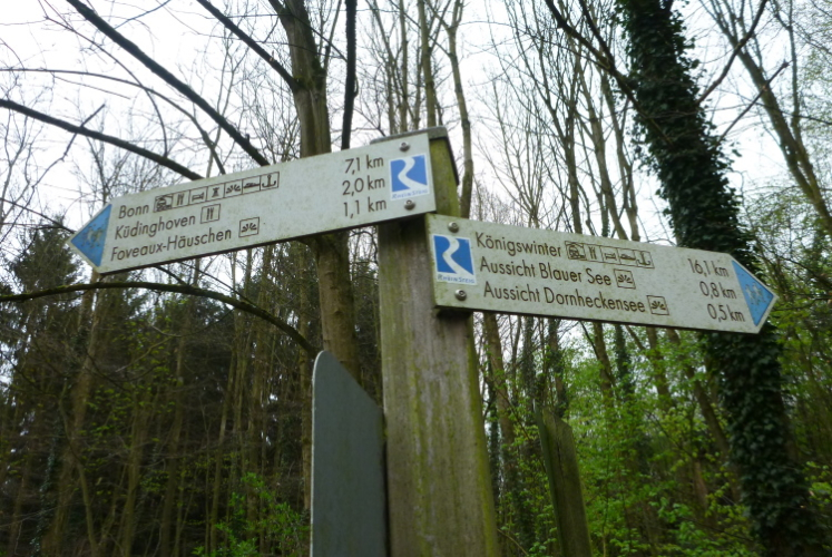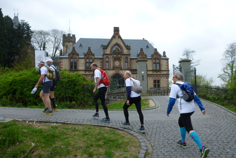 Noch zunächst über den Rhein nach Beuel, durch die Telekom-Zentrale, über die Autobahn und durch einen Vorort steht bald die erste Steigung zum sog. Foveaux-Häuschen an. Dies ist ein 1820 errichteter netter Aussichtspunkt, an dem eine erste kurze Rast eingelegt wird. Für diejenigen, die diese Art der Fortbewegung nicht kennen: Es eine Art „Wanderlauf“, die Gruppe bleibt zusammen, geht die Bergaufstücke, joggt die Geraden und läuft bergab.