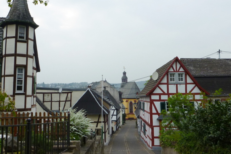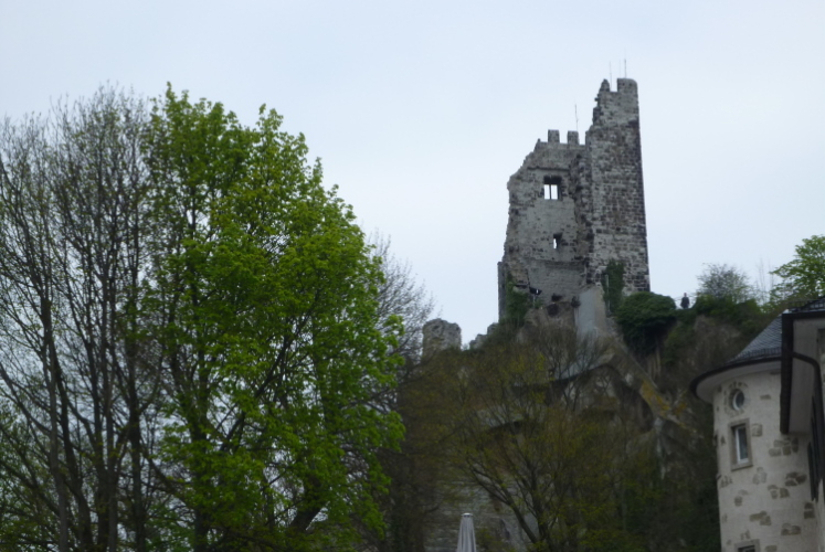 Weiter geht es den Drachenfels steil hinauf. Früher wurden die Holländer in Bataillonsstärke auf Eseln hinaufbefördert. Leider ist der Eselsweg wegen Hangsicherungsarbeiten für ein Jahr gesperrt, weshalb wir eine Ausweichstrecke nehmen müssen. Wir teilen uns etwas unterhalb der Bergspitze, einige nehmen eine Abkürzung, die meisten aber wollen ganz nach oben. Hier angekommen überwältigt uns der Blick schlechthin. Auf der anderen Seite geht es wieder herunter Richtung Rhöndorf, der Heimat unseres ersten Bundeskanzlers, Konrad Adenauer. Erst kürzlich habe ich es endlich geschafft, mir sein Wohnhaus anzusehen, kaum daß ich fünfzehn Jahre hier wohne. Es ist ein lohnenswertes Ausflugsziel.