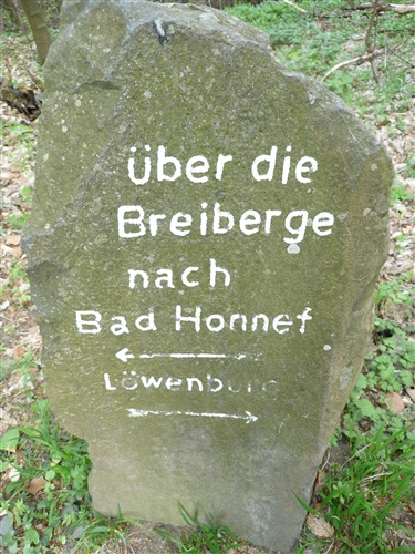 Auf der anderen Seite geht es wieder herunter Richtung Rhöndorf, der Heimat unseres ersten Bundeskanzlers, Konrad Adenauer. Wir erklimmen den Breiberg, umrunden (leider nur) die ruinöse Löwenburg und stürzen uns hinab ins Schmelztal. Seit 1753 wurde hier für rund 120 Jahre intensiver Bergbau (Kupfer, Blei, Zink und Eisen) inkl. des Schmelzens (daher der Name des Tals) betrieben werden. Wieder hinauf geht’s zum Leyberg. Das gemalte „Auge Gottes“ auf diesem Heiligenhäuschen erinnert mich an meine früheren Türkeiurlaube und eine Verpflegungsstelle beim Siebengebirgsmarathon. Selbstverständlich habe ich für Euch um die diesjährige Durchführung dieses im letzten Jahr witterungsbedingt ausgefallenen Laufs gebetet. Ich kann Euch aber zur Beruhigung sagen, daß die Veranstalter ab sofort einen „Plan B“ in der Hinterhand haben.