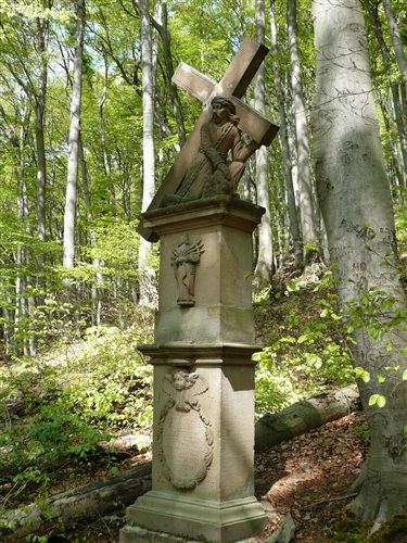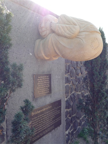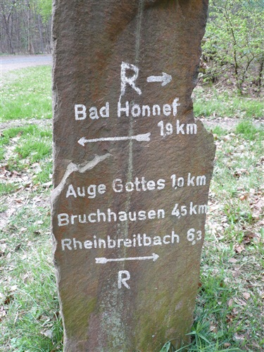 Der anschließende Weg führt uns vorbei an einigen interessanten Bildstöcken, die mir auf dieser Tour noch nie aufgefallen waren. Auf halber Höhe stockt der Bergabzug plötzlich. Rolf grinst sich zwar einen, es führt aber kein Weg an der Erkenntnis vorbei, daß wir uns schlicht verlaufen haben. Obwohl ich ja gelernt habe, daß Männer sichnie verlaufen, sondern nur Alternativen finden! Mist, trotzdem Abzweig verpaßt. Viele, viele Höhenmeter müssen wir wieder steil hinauf und dann fällt es mir wie Schuppen aus den Haaren: Klar, das ist das Kernstück des Drachenlaufs, der Bittweg! Irgendwann sind wir wieder auf dem Pfas der Tugend und ein Hohlweg, vorbei am Kreuz der St. Josephsberger Gewerkschaft, führt uns schließlich am Marienwallfahrtsort Bruchhausen vorbei ins heutige Etappenziel Unkel/Scheuren. Unerwähnt lasse ich mal, daß Hannelore, Roland, eine weitere Mitläuferin und ich kurz vor dem Ende noch einen Extrakilometer eingelegt haben…