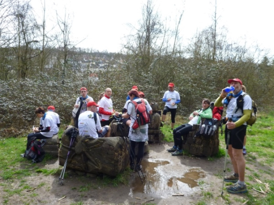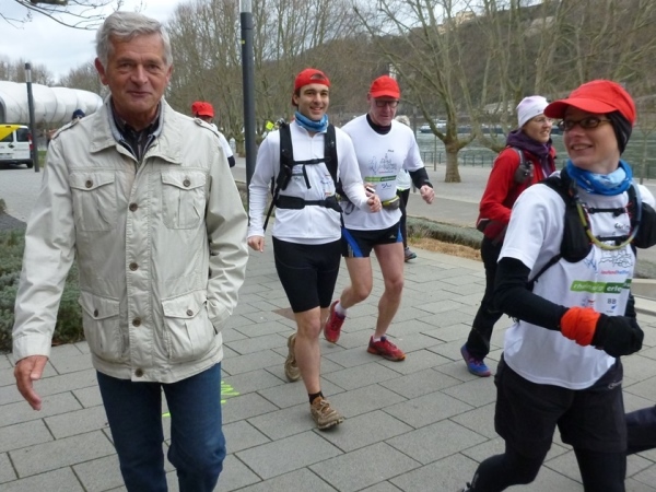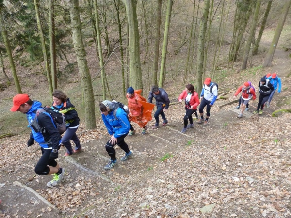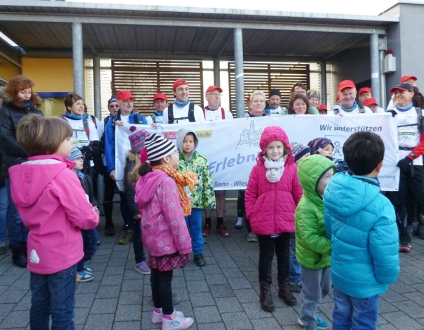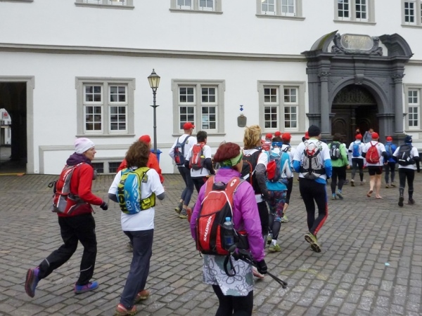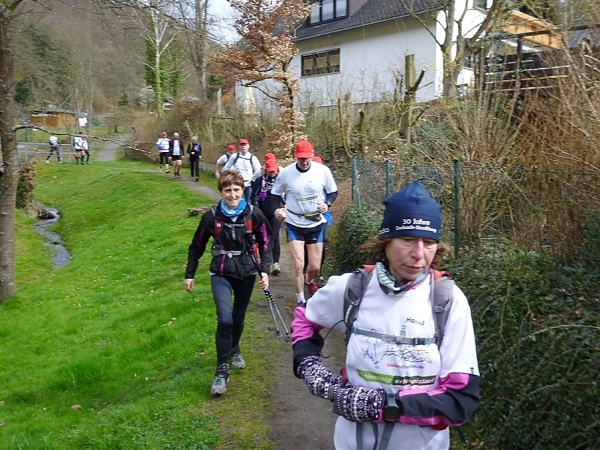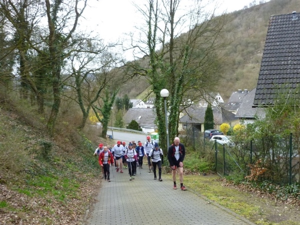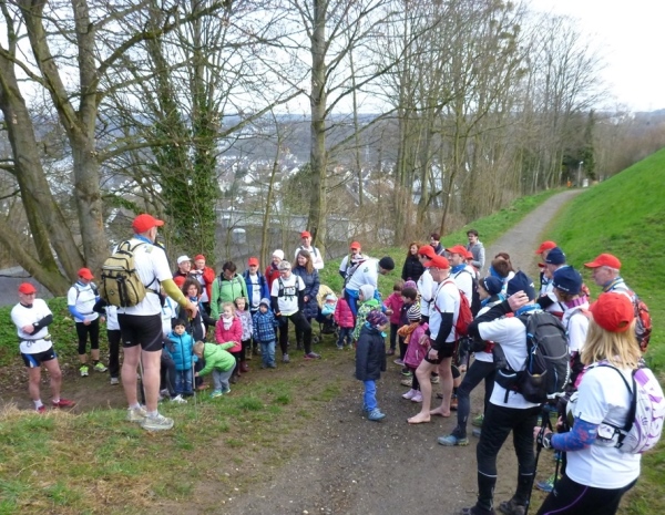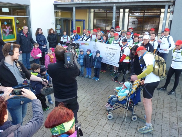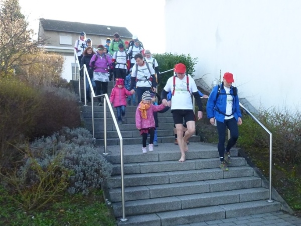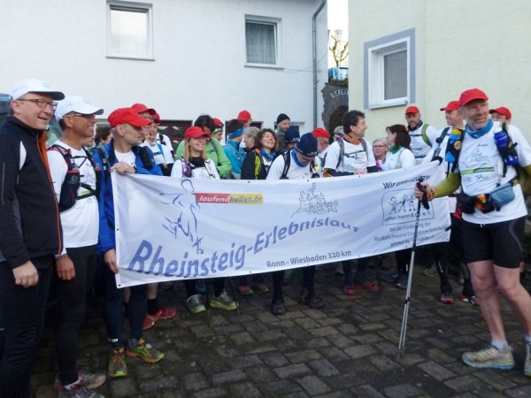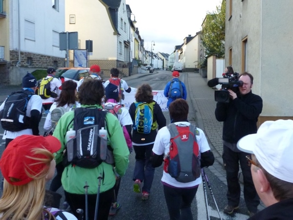 Rund 40 Ultramarathonläufer sind in dem geführten Gruppenlauf (kein Wettkampf) die komplette Strecke oder als Etappenläufer dabei und spenden ihre Startgelder von mindestens 0,50 Cent pro km dem Kampf gegen die Duchenne Muskeldystrophie. An dieser tödlich verlaufenden Krankheit leiden ausschließlich Jungen, im gesamten Bundesgebiet ca. 3.500. Die „aktion benni & co.“, ursprünglich von meinem Nachbardorf Niederbreitbach ausgehend, widmet sich dem Kampf gegen diese Geißel und freut sich über die stets zum Jahresende von den Laufinitiatoren und –organisatoren Brigitte und R(ud)olf Mahlburg beim Eisweinlauf in Baden-Baden übergeben Spenden. Zwischen 5.000 und 6.000 € kommen da jedes Jahr zusammen.