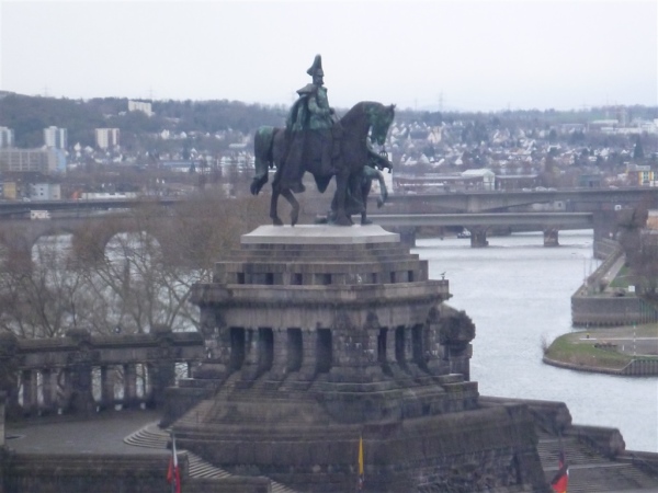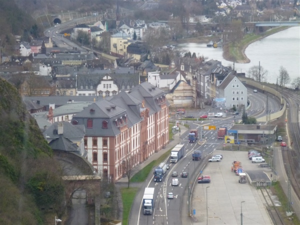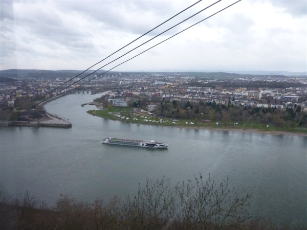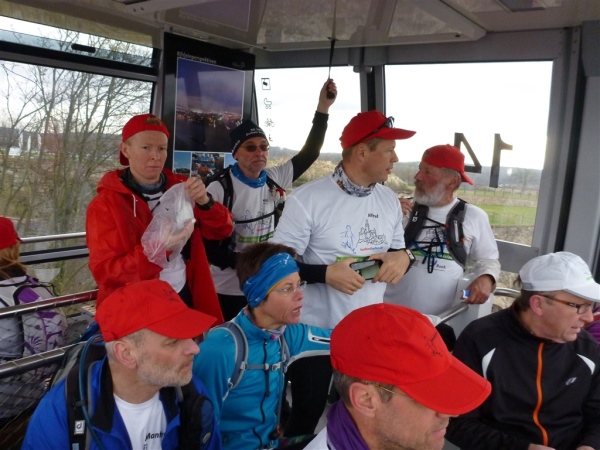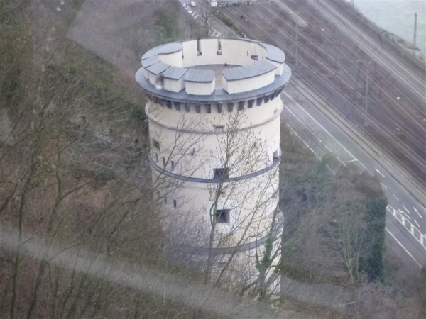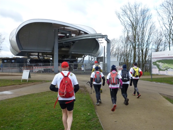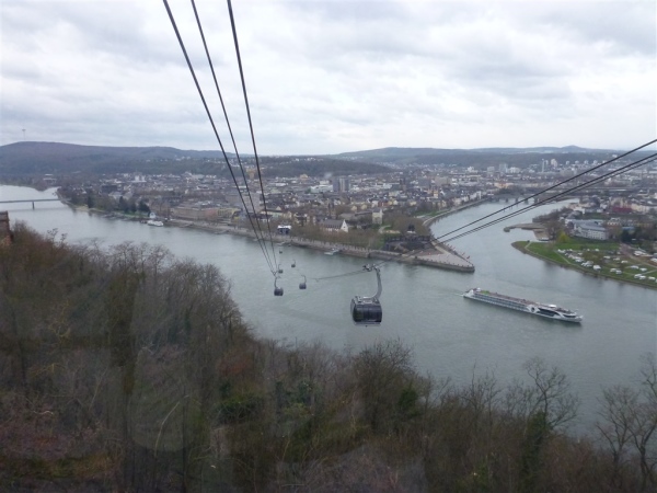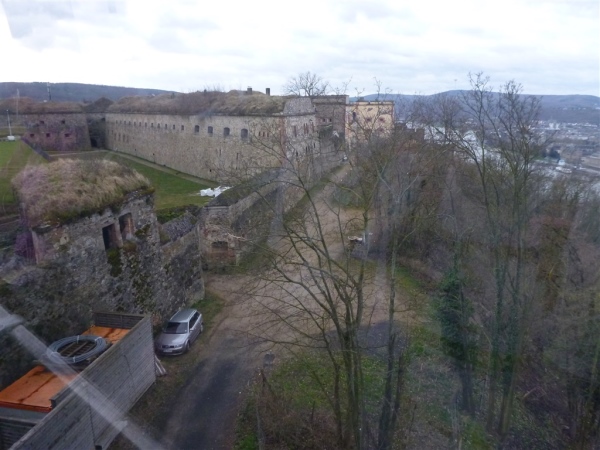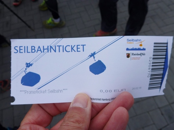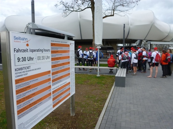 Nach der freudigen Begrüßung vieler Wiederholungstäter kommen wir nach wenigen Metern wir zu einem Kindergarten, wo man uns schon erwartet. Heute ist es etwas ungünstig, da uns aufgrund der Osterferien nur wenige kleine Jungs und Mädels ein paar Meter begleiten können, doch die gelebte Ökumene zwischen Evangelen und Katholen macht’s möglich. Wieder unter uns erreichen wir bald das Vorfeld der Festung Ehrenbreitstein, die seit der Bundesgartenschau 2011 wieder mustergültig hergerichtet ist. Leider (oder Gott sei Dank?) durchmessen wir die Anlage heute nicht, sondern legen zuerst ein Schaulaufen für den SWR hin, der einen Beitrag für die Landesschau dreht. Die waren uns bereits beim Start und vorm Kindergarten nicht von der Seite gewichen. Dann geht’s zur Seilbahn.