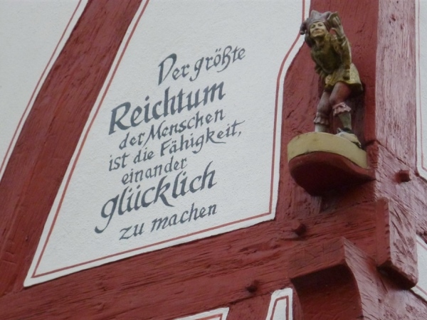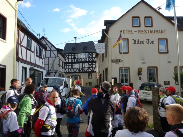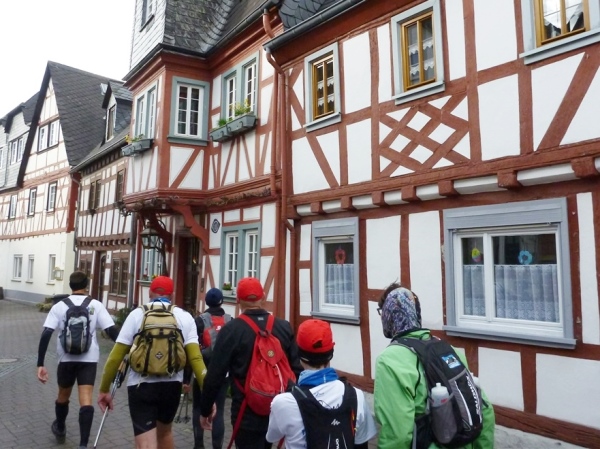 Die Raum-/Zeitberechnung sorgt für eine, wie soll ich sagen, leichte Änderung des Restprogramms zu unseren Gunsten, die es erlaubt, noch zu einer anständigen Zeit durch das beschauliche Fachwerkstädtchen Osterspai das Etappenziel in Filsen zu erreichen. Ich freue mich, wieder dabei gewesen sein zu dürfen und habe diesen schönen Etappenlauf schon fest im 2016er Programm verankert. Wer den Rhein von seiner schönsten Seite kennenlernen möchte, dem sei zumindest die eine oder andere Etappe ans Herz gelegt. Aber Achtung: Die Gesamtreise ist immer sehr früh ausgebucht!