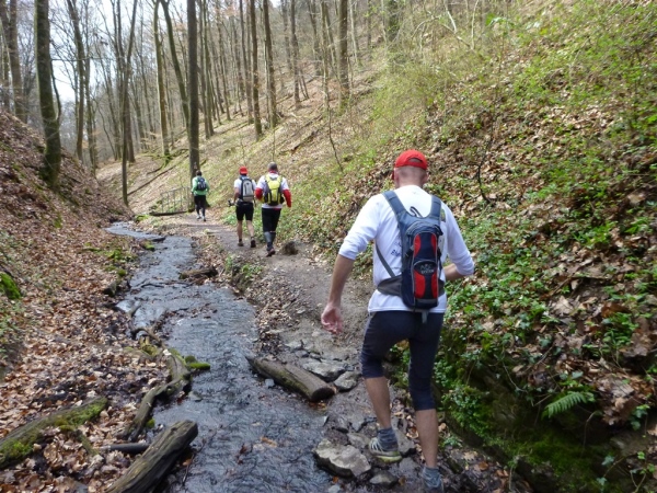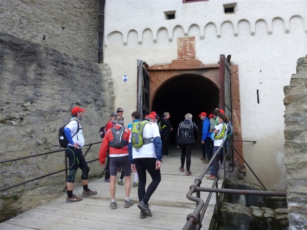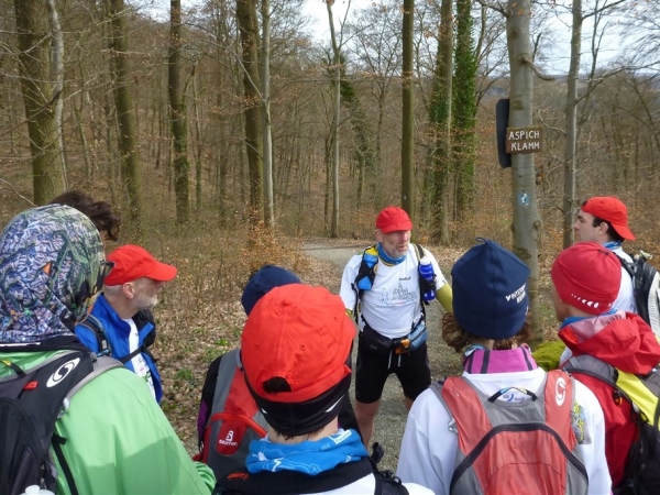 Natürlich ist das insgesamt eine gemütliche, teils sehr gemütliche Art der Fortbewegung. Aber es ist gut so, denn die Gegend ist einerseits zu schön zum Durchhetzen und andererseits können durch das langsame Tempo und immer wieder Warten auf Nachzügler auch Marathonnovizen einen Ultra schaffen. Als Etappenläufer muß ich mir auch immer wieder in Erinnerung rufen, daß die meisten Läufer in den Vortagen schon drei schwere Ultras von je über 50 km mit jeder Menge Höhenmeter hinter sich haben.