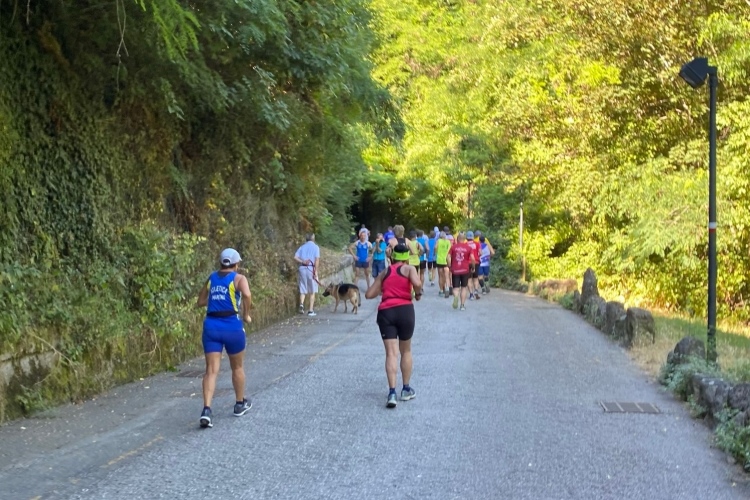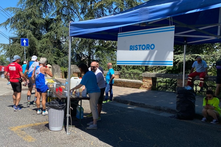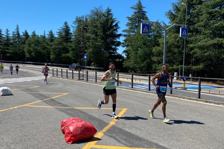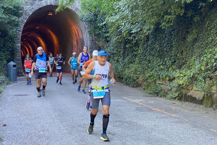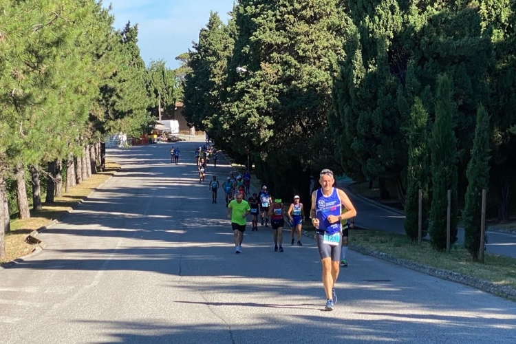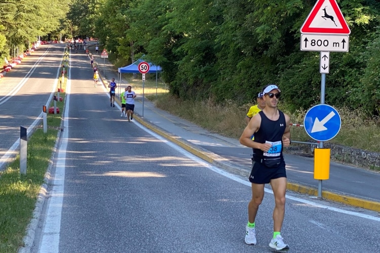 Runde fünf wird die härteste für mich. Der führende Marathoni hat mich schon zwei Mal überholt. Er läuft für die Gruppo Forestale und trägt die Abbildung eines Bergbewohners auf seinem Hemd. Viele von den Schnellen haben offenbar den Drang, ganz knapp an einem vorbeizulaufen, auch wenn ich auf der breiten Straße nicht auf der Ideallinie unterwegs bin. Aber das kenne ich ja schon von anderen Läufen, muss wohl eine magische Anziehung sein. Einige Überholende freuen sich, wenn ich ihnen ein „Forza“ hinterherrufe. Ein Luigi dreht sich dreimal nach mir um, fragt sich vermutlich, woher ich ihn kenne. Aber sein Name steht hinten auf dem Shirt.