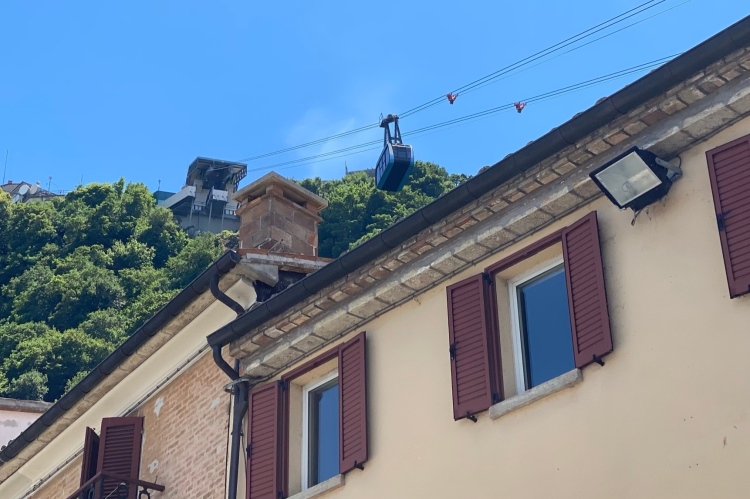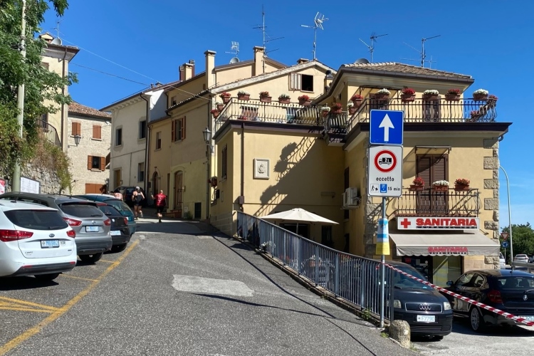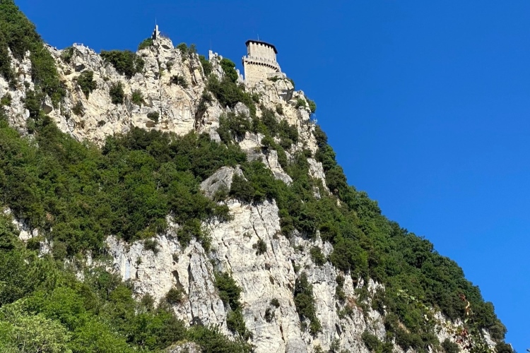 Von Rimini sind es 20 Kilometer nach San Marino auf einer Straße, die als Schnellstraße in den Karten verzeichnet, aber mit Ampelanlagen alle 500 Meter gespickt ist. Da braucht man stahlharte Nerven.