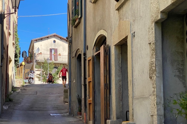 200 Meter tiefer in Borgo Maggiore befinden sich Start und Ziel des Marathons und dort in der Altstadt gibt es auch die Startunterlagen. Da Judith und ich uns nicht sicher sind, dass wir die Unterlagen am Sonntag ganz ohne Probleme bekommen, sind wir samstags schon da. Es geht aber alles recht schnell. Den Namen nennen, dann noch mündlich bestätigen, dass wir die Startgebühr schon überwiesen haben, die Covid-19-Erklärung abgeben und kurz danach halten wir die Startnummer mit Chip und ein Veranstaltungshemd in Händen. Auf Sightseeing haben wir keine große Lust, da wir erstens schon mal in San Marino waren und außerdem die Hitze viel zu groß ist. Also zurück ans Meer.