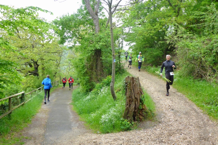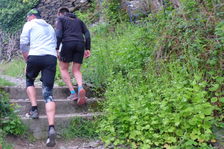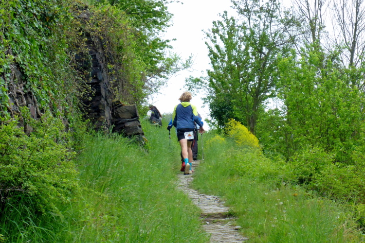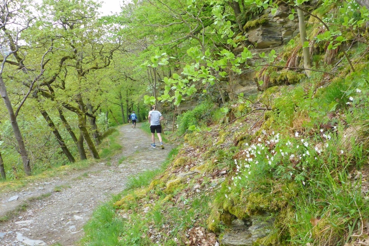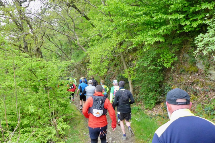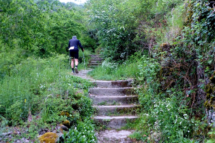 Bei wohl allen anderen 24-h-Läufen haben die Teilnehmer die Strecke fast für sich alleine. Aber hier laufen wir auf einer äußerst beliebten Wanderroute. Alex weisst uns ausdrücklich darauf hin, dass wir auf den schmalen, steinigen Pfaden mit viel Gegenverkehr rechnen müssen. Doch das sehr trübe Wetter mit nur 8 bis 14 Grad hält heute wohl viele Leute vom Wandern ab. Die meisten wandern ohnehin nur morgen am Maifeiertag. Die wenigen Wandergruppen, denen wir begegnen, marschieren brav im Gänsemarsch, so dass wir überall problemlos voran kommen.