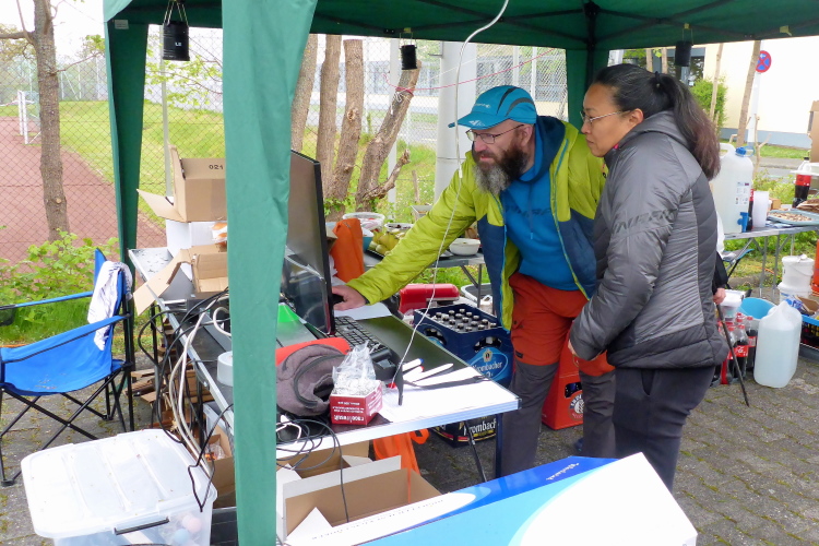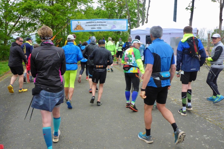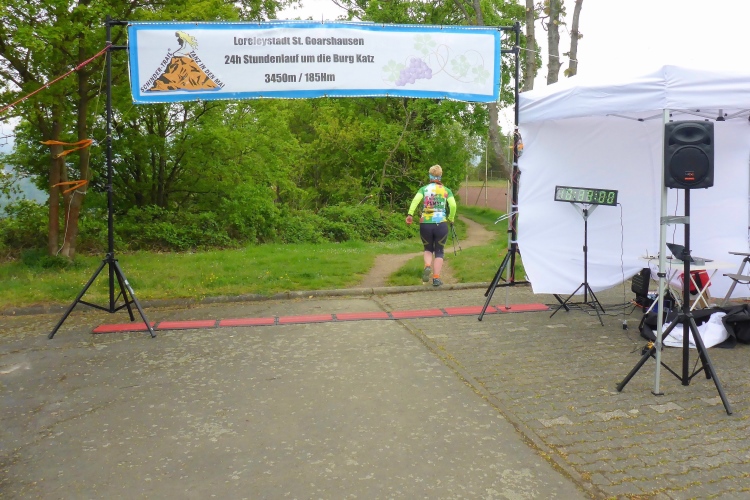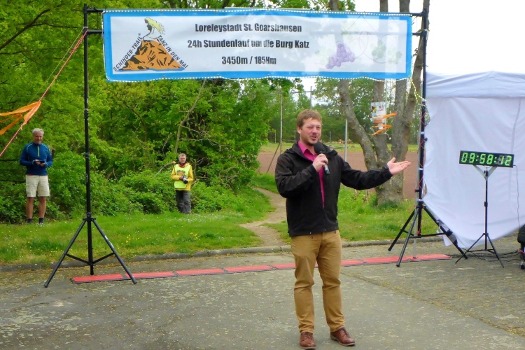 Am Samstagmorgen bauen manche Läufer am Parkplatz vor dem Schul- und Sportzentrum im Ortsteil Heide eigene Pavillonzelte auf, doch auch im Start-Ziel-Bereich stehen genügend Zelte. Hier oben kann man in den Laufpausen mit schöner Aussicht zur Loreley und auf den Rhein rasten. Überraschend viele der angemeldeten Teilnehmer sind nicht gekommen. Insgesamt starten nun 52 Einzelläufer und 3 Teams.