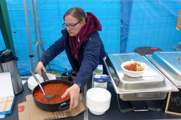 Die Verpflegung ist mehr als nur hervorragend. Zusätzlich zur enorm vielseitigen Auswahl der üblichen Sachen von Kartoffeln mit Salz, Süßigkeiten und Gesundem bis zu verschiedenen Kuchen und belegten Broten gibt es immer wieder Sonderaktionen. Mal werden wir mit frisch gebackenen Waffeln mit Sahne und Puderzucker verwöhnt, mal mit Pasta, mal mit Kartoffelsuppe oder am Morgen mit Rührei. Auch Veganer können hier zufrieden sein.