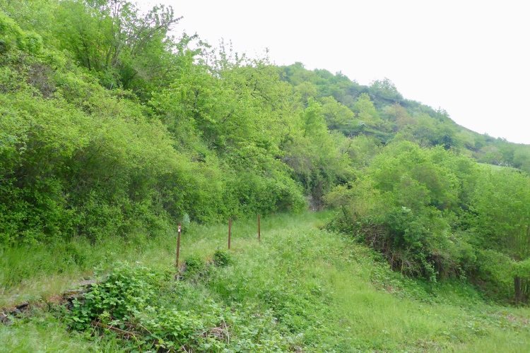 Am nächsten Morgen scheint bei warmem Frühlingswetter die Sonne vom wolkenlosen Himmel. Vom gegenüberliegenden Ufer fotografiere ich noch einmal einen Teil der Laufstrecke. Hier erkennt man den Höhenunterschied besonders gut. Rechts oben sieht man auf dem Bild die Scheinwerfer am Sportplatz. Nächstes Jahr findet der Tanz in den Mai wieder statt, dann hoffentlich mit mehr Teilnehmern und sehr gerne auch wieder mit mir.
