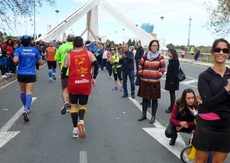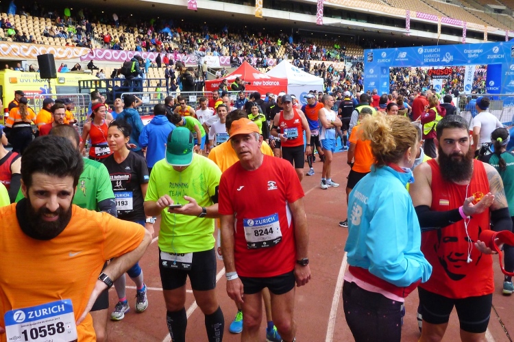 Vorbei am Hauptgebäude der Universität, einer früheren Tabakwarenfabrik – endlich mal eine sinnvolle Umwidmung - geht es über die Calle San Fernando in die Altstadt. Ein Spalier von Menschen erwartet uns. Genießen ist angesagt. Überhaupt sind die Sevillanos ein hervorragendes Publikum. Nach dem Lauf werden wir dank unser Medaillen immer wieder beglückwünscht, sogar am Flughafen-Gate ruft uns ein Bediensteter noch ein “Campeones" zu.