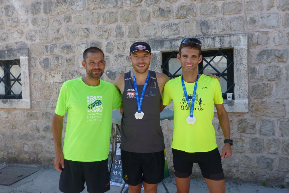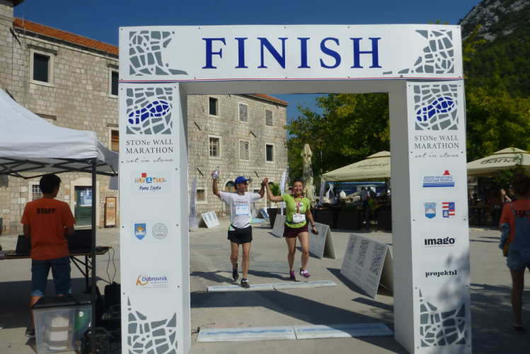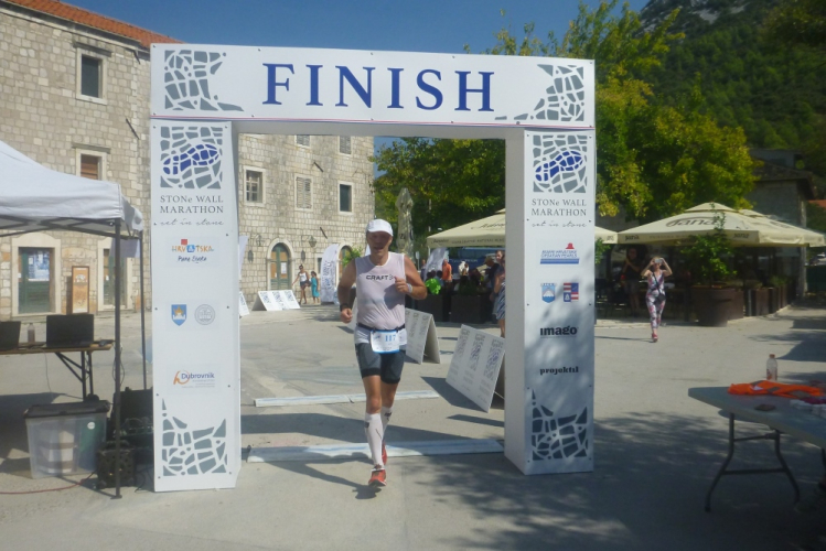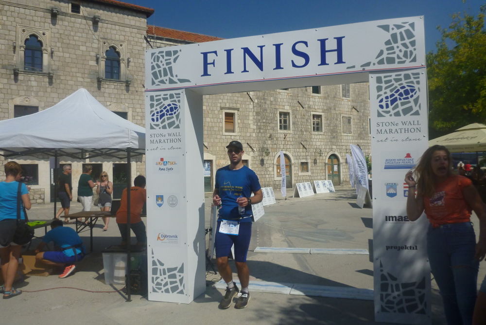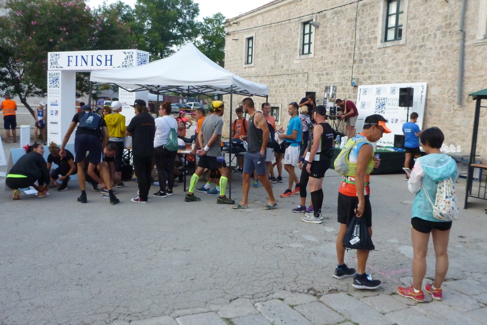 Ich komme mit den Cheforganisatoren ins Gespräch. Der Zagreber Željko Konosić mit einer Halbmarathon-PB von 1:12 musste nach seiner karrierebeendenden Laufverletzung auf andere Gedanken kommen. Einer seiner Freunde wollte am Marathon auf der Großen Mauer in China teilnehmen und er fragte sich, warum so weit fliegen, wenn wir auch eine tolle Mauer unser Eigen nennen, über die man laufen kann, und dazu über eine beneidenswert tolle Gegend verfügen? Und man von hier aus in kurzen Entfernungen beeindruckende Sehenswürdigkeiten (Dubrovnik, Split, Insel Korcula, Mostar u.v.m.) ansteuern kann? Gesagt, getan. Das war die Geburtsstunde des Ston Wall Marathon, der heuer seine elfte Auflage erlebt. Leider leben die meisten kroatischen Langläufer im Norden des Landes, daher kommen die Teilnehmer (in diesem Jahr u.a. eine 36köpfige Reisegruppe aus Hong Kong) überwiegend aus dem Ausland. Und selbst die erscheinen in viel zu geringer Zahl wenn man bedenkt, was einem hier geboten wird.