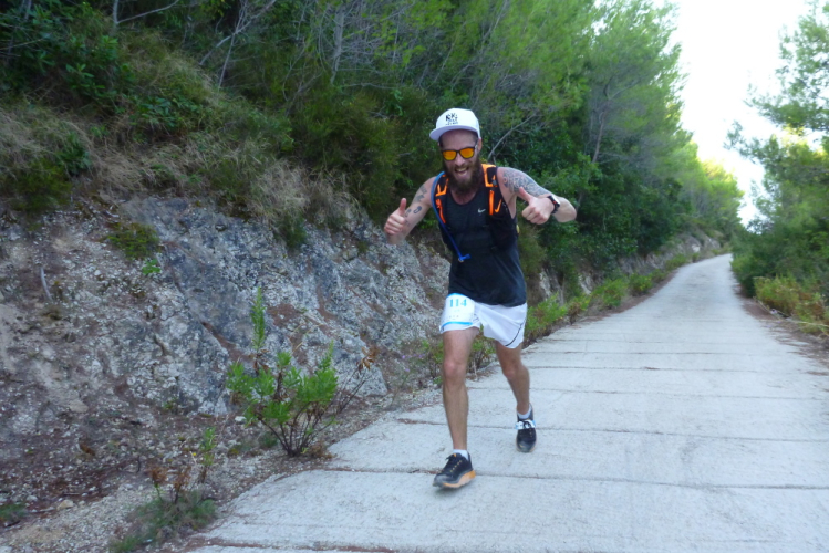 An der Festung geht es jetzt nach links ein kurzes Stück auf dem Hauptverkehrsader der Halbinsel weiter, die man natürlich nicht hat sperren können. Hinter der attraktiven Palmenreihe biege ich auf einen Feldweg, die Straße des Napoleon, ab. Dieser hatte die Region 1805 erobert und war wegen der nach der Schlacht von Trafalgar an die Briten verlorengegangenen Seeüberlegenheit gezwungen, eine Straße inmitten der Halbinsel anzulegen, die gegen Beschuss von See her sicher war. Nach dem Wiener Kongress stellten sie die Österreicher fertig, die aber bekanntermaßen hier auch schon lange nichts mehr zu melden haben. Ich jedenfalls hadere mit dem Weg ein wenig. Zwar ist der Einstieg wie ein grüner Tunnel, schattig und lauschig, bald aber ist es mit der Herrlichkeit vorbei. Die Sonne brennt gnadenlos vom Firmament, der Untergrund ist schwierig zu belaufen und die ständigen Steigungen beginnen mir schwerzufallen. Da bin ich allerdings nicht der einzige, denn ich beginne, etliche Läufer einzusammeln, die noch langsamer unterwegs sind.