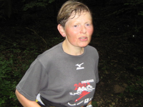 Giselher hat schon vor ca. 4 ½ Stunden in 18:48 h gefinisht und hat damit den Streckenrekord von gut 22 Std. auf spektakuläre Weise gebrochen. Er hat schon viele 100 Meilen-Läufe insbesondere in den USA hinter sich gebracht, unter anderem auch den Lauf in Colorado, der als schwerster 100 Meilenlauf gilt. Er hat ihn in ca. 31:20 h als 2. gefinisht. Kleine Marathon-Sprint-Strecken machen ihm keinen Spaß.