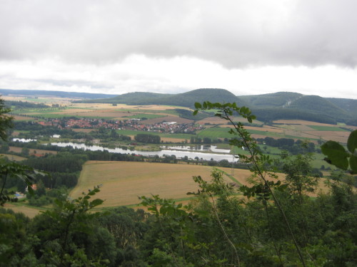 Die Orientierung ist aber auch ohne Karte kein Problem. Wir genießen die Ausblicke ins Tal. Bald stehen wir vor der heruntergelassenen Bahnschranke in Godenau und den Rest des ersten Teilstücks kennen wir schon, denn auf dem gleichen Weg geht es jetzt wieder nach Sibbesse. Dachte ich jedenfalls. Bis dieser üble Anstieg, auch die Wettenser Schlei genannt, kommt. Es ist mir gänzlich entgangen, dass ich dieses Stück auf der ersten Hälfte heruntergelaufen sein soll. Ich verstehe jetzt aber den Namen „Roadrunners’ hell“. Die Passage zieht sich und zieht sich. Ich habe das Gefühl überhaupt nicht voran zu kommen. Ab und zu geht es etwas bergab. Das sind eigentlich meine Strecken. Davon merke ich jetzt nichts. Es ist einfach ein gutes Gefühl, dieses wuchtige Teilstück hinter sich gelassen zu haben und den Blick auf Sibbesse richten zu können. Es regnet jetzt auch nicht mehr, und endlich kann ich fotografieren. Thomas möchte seine Schrittfrequenz reduzieren und verlässt uns. Er schließt sich für den Rest der 1. Runde Elisabeth an. Oliver Lau kommt uns gutgelaunt schon auf der 2. Runde entgegen.
