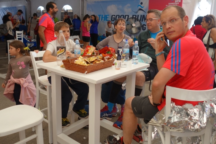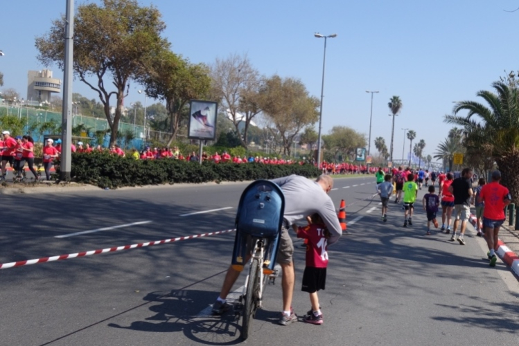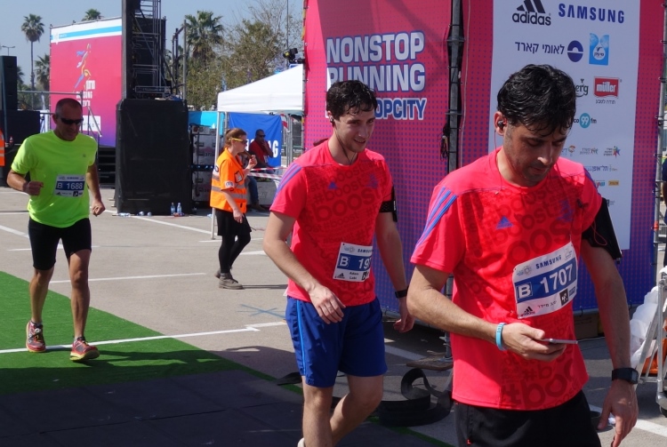 Ich halte mich nur noch kurz im Zielbereich auf, löse meinen Drahtesel aus und fahre zurück zum Hotel. Am Yarkon kommen mir noch immer Läufer entgegen, auf anderen Straßen der Stadt tobt derweil das normale Verkehrschaos.