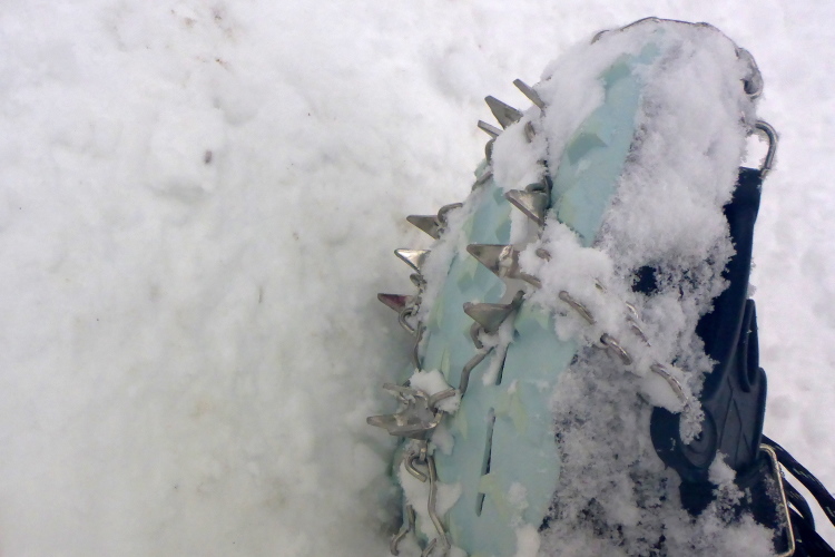 Das Laufen wird jetzt schwer. Im Wald sammelt sich Matsch an den Ketten. Je höher wir kommen, desto höher der Schnee, der auf dem Trail eine feste Eiskruste bildet. Wenn diese bricht, hängt sie ebenfalls an den Ketten. Bis zur nächsten Verpflegung verlieren wir so 10 Minuten.