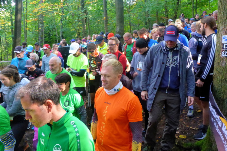 Bei der gestrigen Anreise hatten wir noch 20 Grad, jetzt sind noch 10. Der kommende Regen soll bis Sonntag das ganz noch einmal halbieren und Sonntag früh sind 5 Grad angekündigt. Pünktlich wie die meisten finde ich mich ein, aber offensichtlich hat man den Umparkenden noch etwas Zeit eingestanden. Michele und Heiko teilen uns noch mit das wir die erste Runde nicht scannen brauchen, man möchte Gedrängel im dann noch dichten Feld vermeiden. Ab der 2. Runde ist dann jeder für seine Zeitnahme verantwortlich.