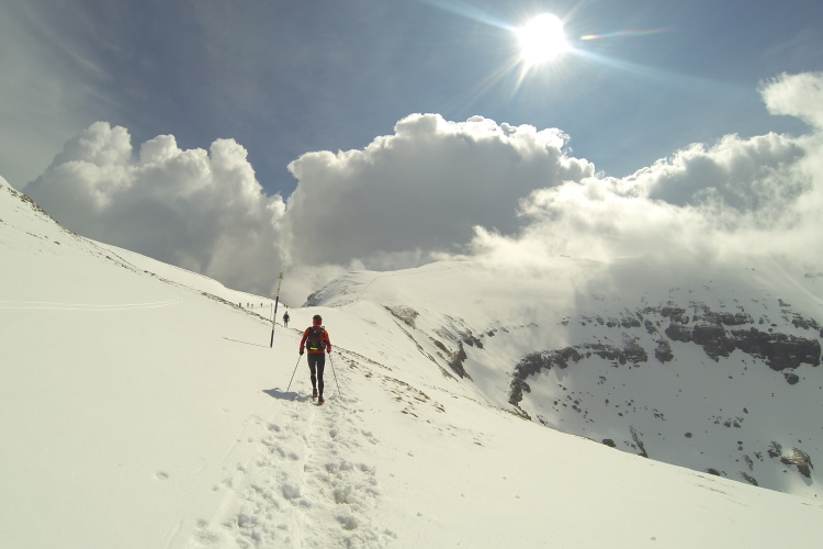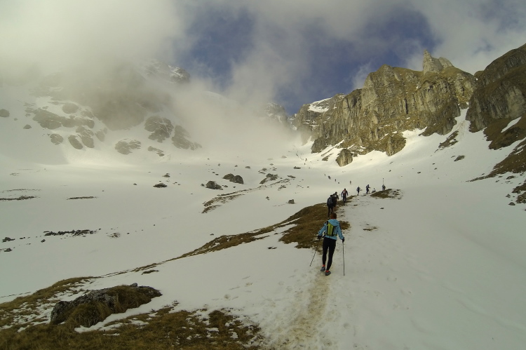 Schneemenge – laut Veranstalter liegt ein wenig auf dem Weg, jedoch meist plattgetreten; zur Orientierung: ich war im Mittelfeld unterwegs und über 6 Std im Schnee laufend, und dies zum Teil zwischen knie- und hüfttief.