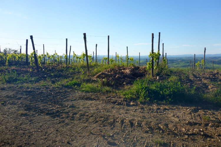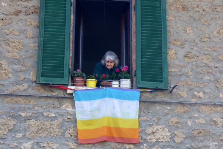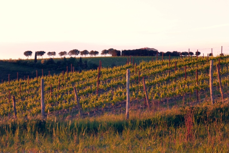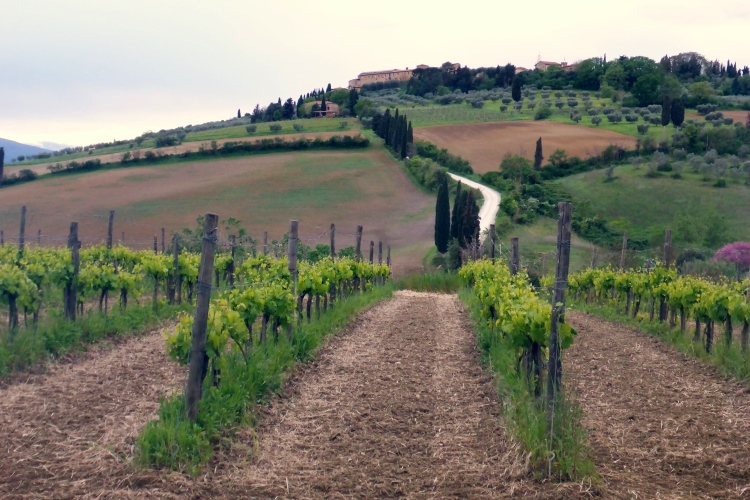 Am nächsten Morgen blinzelt die Sonne durch die Fensterläden. Das ist doch mal ein gutes Zeichen. Vom Starkregen des letzten Abends ist keine Spur mehr. Wir treten auf die Terrasse und blicken auf eine Bilderbuchlandschaft. Wir genießen die Aussicht ins Val D’Orcia, wo auf den fruchtbaren Böden der rubin- bis granatrote Brunello di Montalcino gedeiht. Er wird nach strengsten DOCG-Regeln sortenrein aus der Sangiovese Grosso Traube hergestellt und gehört zu den bekanntesten italienischen Weinen. An unserer Zufahrt hängen schon die Flatterbänder vom Lauf. Wir werden etwa bei km 145 hier vorbeikommen. Es wir Nacht sein und ich hoffe, dass wir stark genug sind, nicht hier die Segel zu streichen.