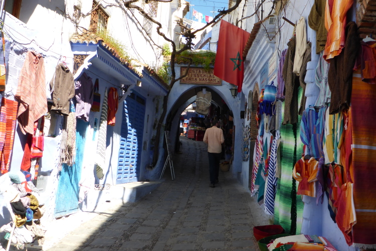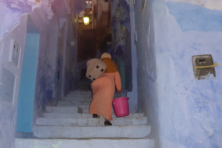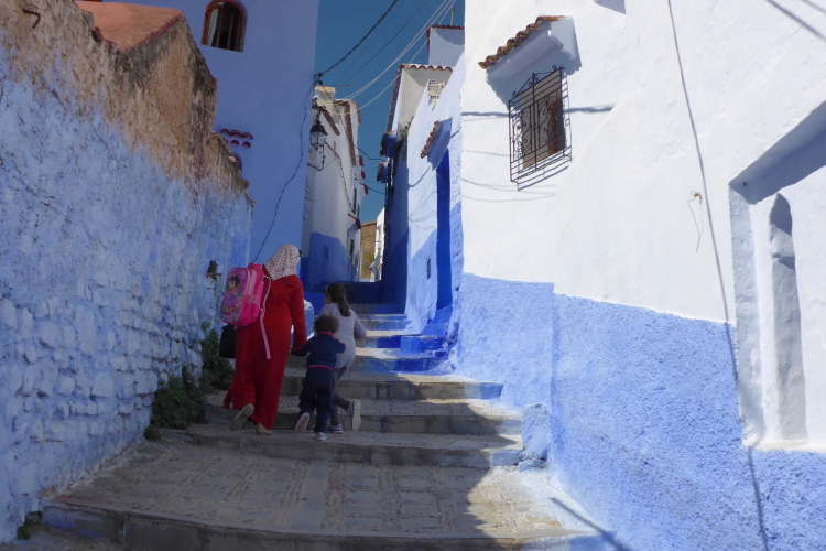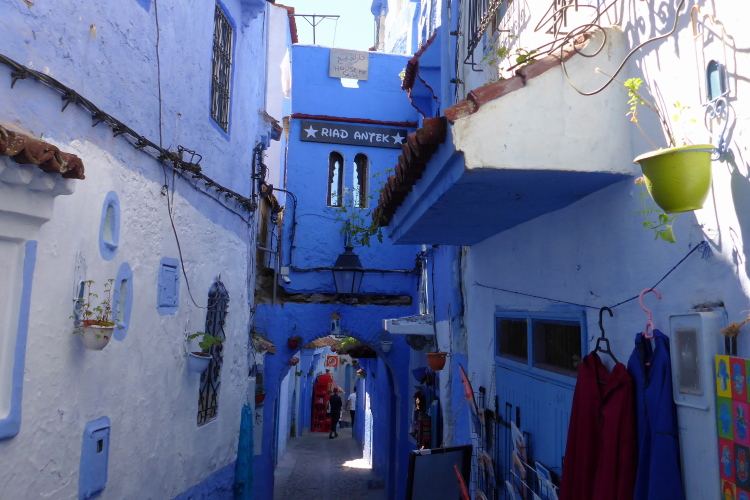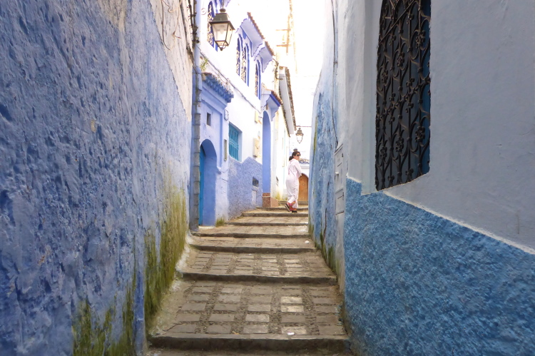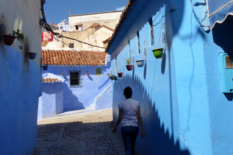 Von Tanger nimmt man den CTM-Bus für 3 Euro und landet in der blauen Stadt Chefchaouen. Die Farbe Blau soll vor dem Bösen Blick schützen, denn Chefchaouen galt bis zum 20. Jahrhunderts als heilige Stadt, deren Besuch Ausländern (per Todesstrafe!) verboten war. So blieb die mittelalterliche Architektur erhalten und zählt jetzt zum Weltkulturerbe.
