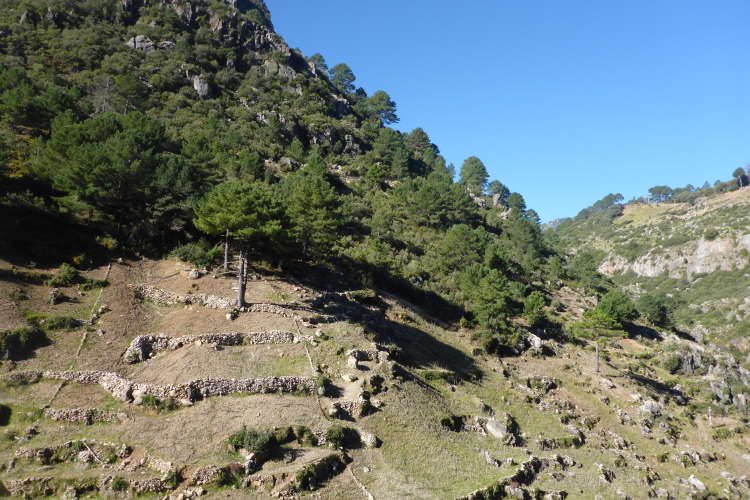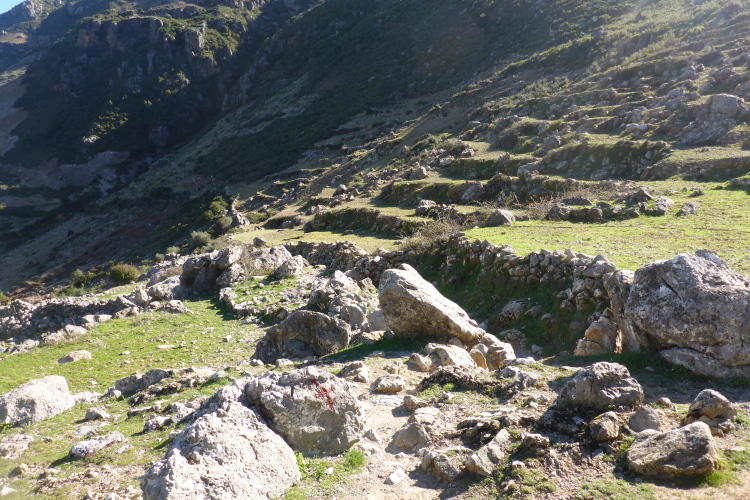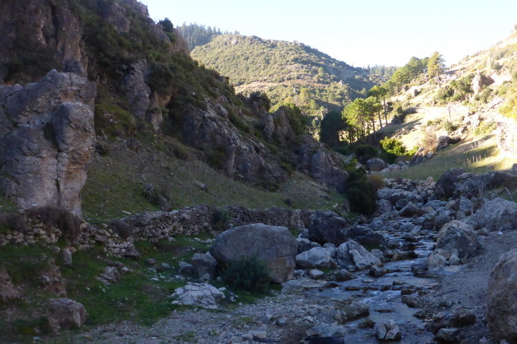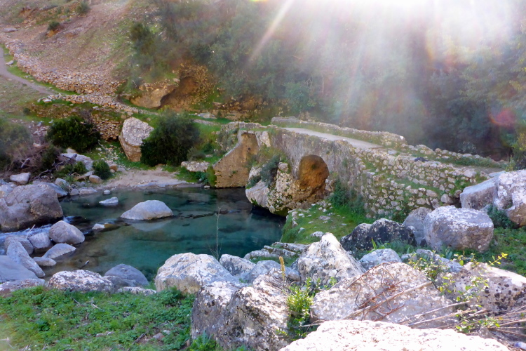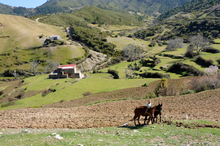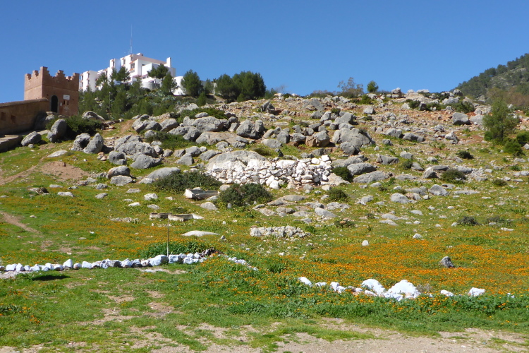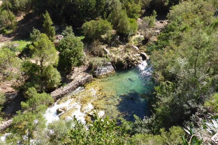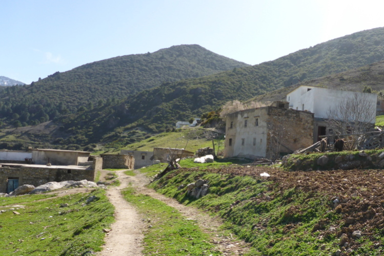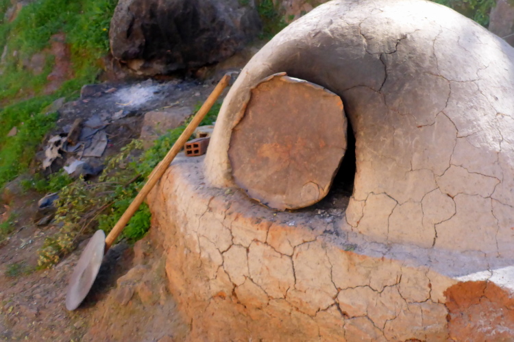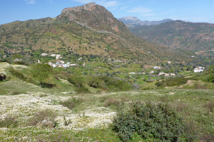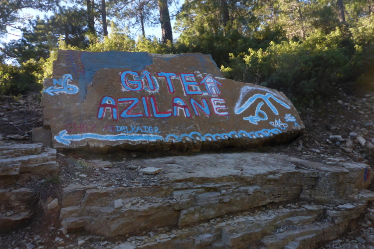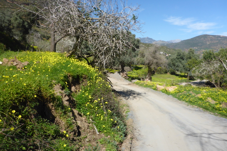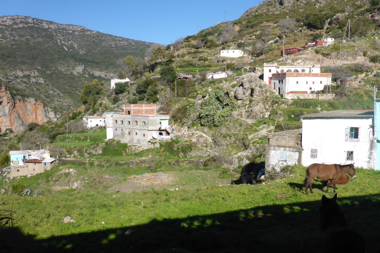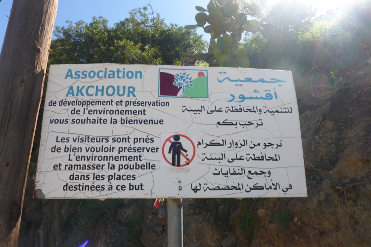Steil geht es hinauf, bis wir zum Oued (Trockenfluss) Tisemlal gelangen. Hier sammelt man das Wasser für die Stadt, speist es in die vielen Brunnen ein, die seit dem Mittelalter aus weiß-blau gekachelten Wänden sprudeln. Unter uns präsentiert sich noch Azilane, die kleine blaue Schwester von Chaouen, ein letztes Mal in seiner ganzen Schönheit, dann passieren wir einen aufgegebenen mittelalterlichen Kalkofen. Mit dem Kalk werden Häuserwände verputzt. Kalk ist wegen seines hohen PH-Wertes antibakteriell und verhindert Schimmel.