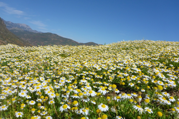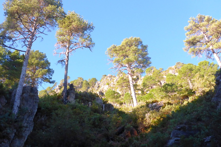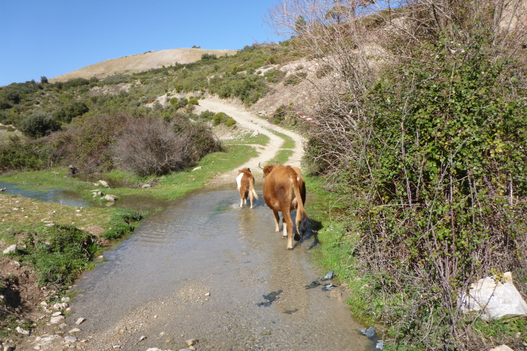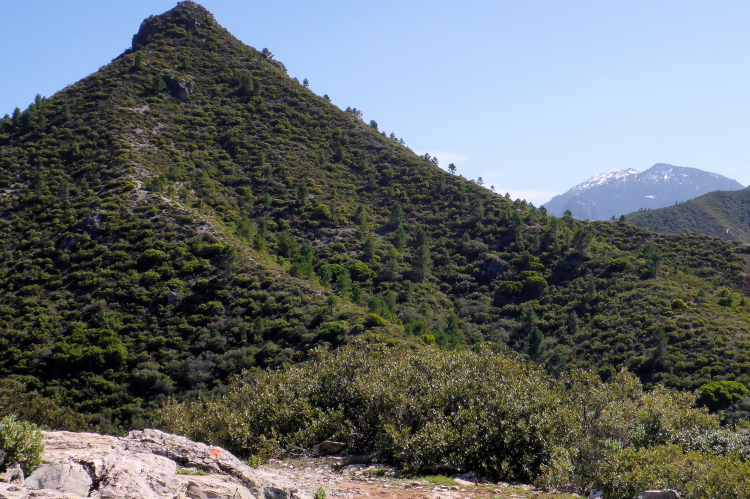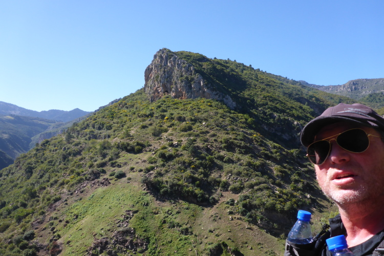 Sobald ich ein wenig Schatten finde, setze ich mich hin und hechele, wie der unterlegene Hahn letzte Woche auf den Philippinen. Nach zwei Stunden geht es mir besser, ich kann zum Mittelmeer schauen, ich mache Fotos von den majestätischen Bergen und freue mich über die Blüten des gelben Ginsters, die von den blauen Lavendelblüten abgelöst werden.