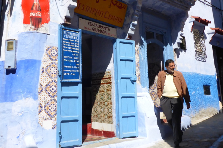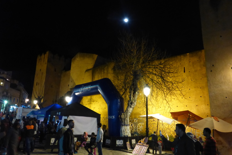 Ganz oben im Hotel Atlas Chaouen bekomme ich eine Übernachtungsmöglichkeit. Dort ist morgen früh um 5 Uhr der Start und nicht um 6 Uhr, wie es in der Ausschreibung steht. In den folgenden zwei Tagen wird mir der Auf-und Abstieg zu diesem Hotel dasLeben schwer machen. In die Oberstadt kommt kein Auto, kein Japaner, kein Kiffer, die Gassen sind zu eng, der Aufstieg zu brutal. Für mich brutal ist die Verpflegungssituation bei marokkanischen Läufen, denn der Mensch lebt nicht von Wasser und Brot allein. Also gehe ich auf die Suche. Und das ist freitags ein Riesenproblem in einem moslemischen Land.