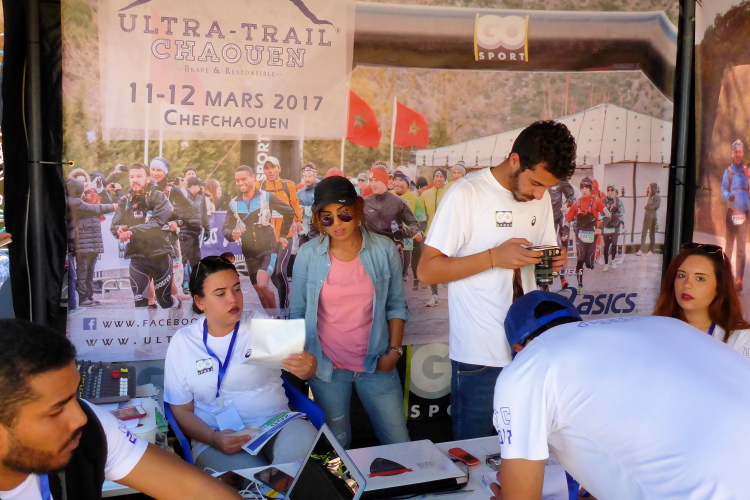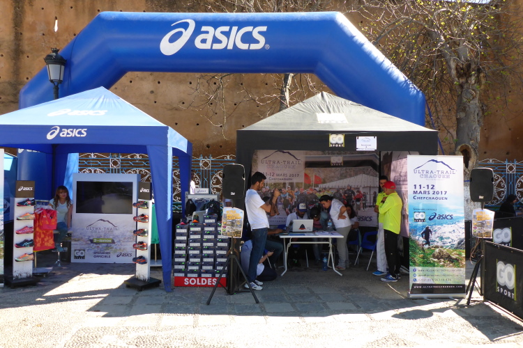 Für die 85 km (es gibt noch 42 und 20 km) wird eine erweiterte Pflichtausrüstung gefordert. Für Trails in Marokko sind Micropourtabletten wichtig. Hätte ich die letzte Woche auf den Philippinen gehabt, dann wäre mir einiges erspart geblieben. Da man eine Tablette auf 0,5 Liter nimmt und 30 Minuten warten muss, bevorzuge ich 0,5 Literflaschen als Wasserreservoir und nicht den Camelbak. Da man sich in Marokko grundsätzlich erst kurz vor dem Lauf einschreibt, erfolgt auch die Kontrolle der Pflichtausrüstung direkt auf dem Platz, in der Hitze des Tages, nach einem anstrengenden Aufstieg. Das ist nicht nach meinem Geschmack.