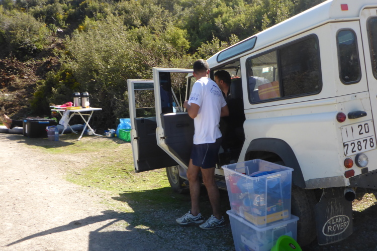 Relativ schnell und freudig erreiche ich den Pass „Plaza Espana“ auf 1800 Meter Höhe. Dort sitzt Mohamed und zittert wie Weltmeister. Er wird der Einzige von uns Zwölfen sein, der aufgibt. Mir geht’s gut, obwohl man mir einredet, ich solle aufgeben. Immer wieder treffe ich an den Pc´s den dicken Bärtigen, der behauptet, er wäre Rennarzt und ich solle ihm doch bitte in die Augen schauen. Das aber ist nicht so einfach. Er hat braune, ich hab blaue Augen. Außerdem kämpfe ich sichtbar mit dem Gleichgewicht, aber es gibt kaum Sitzmöglichkeiten. Es wird laut gelacht, als ich mich auf die Rückbank eines Autos lege, denn es ist die verrauchte Karre der Parkranger. „Wir fahren dich zurück!“ „Nunca, nunca!“
