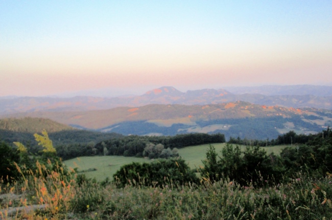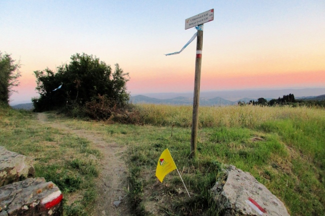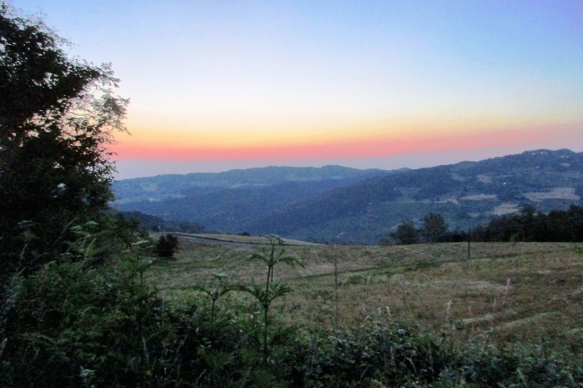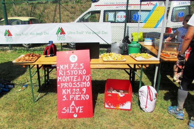 Der nächste CP befindet sich in Monzuno bei km 44,7. Kurz bevor ich dort eintreffe, beginnt die Morgendämmerung und lauter Vogelgesang kündigt einen makellosen Sommertag an. Das Angebot am Verpflegungstisch ist ähnlich wie am vorherigen. Kein Grund lange zu verweilen.