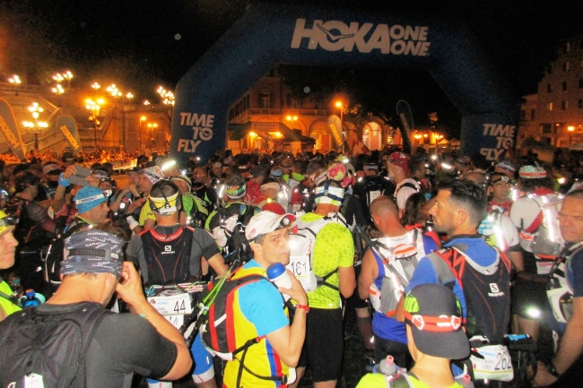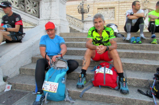 Ohne verabredet zu sein, treffe ich die beiden anderen gemeldeten Deutschen, Renate aus dem Allgäu und Peter aus Ingolstadt. Die verbleibende Wartezeit verbringen wir gemeinsam, unterbrochen von lautstarken Begrüßungen einiger meiner italienischen Lauffreunde.