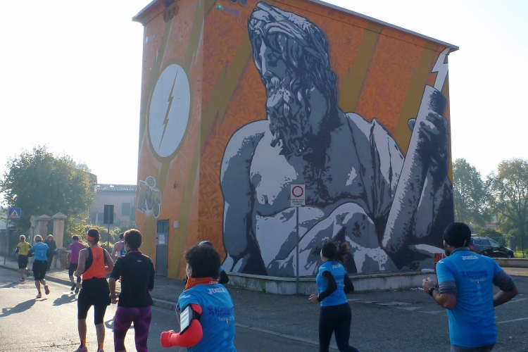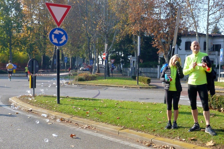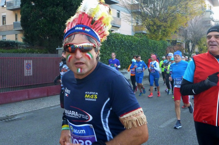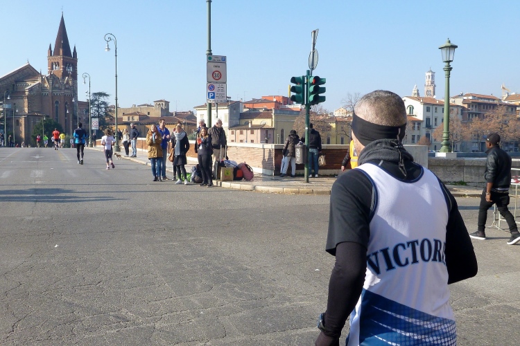 Der Verona Marathon ist im internationalen Laufbusiness angekommen: Trotz des erforderlichen Gesundheitszeugnisses und der sonstigen bürokratischen Hürden sind die Steigerungsraten bei den ausländischen Teilnehmern beeindruckend und liegen im Vergleich zum Vorjahr für den Marathon bei 17 und für den Halbmarathon bei 20 %. Oft versuche ich mit Läufern aus Großbritannien ins Gespräch zu kommen. Die scheinen unterhaltungstechnisch den Brexit aber schon umgesetzt zu haben und wollen sich beim Laufen nicht ablenken lassen. Mein EU-Fähnchen fördert wohl auch nicht die Kommunikationsbereitschaft – dabei haben immerhin 48 % der Briten für Europa gestimmt. Schade, nun werde ich nie erfahren, wo die Läufer aus der „Steel City“ herkommen. Aus Duisburg jedenfalls nicht.