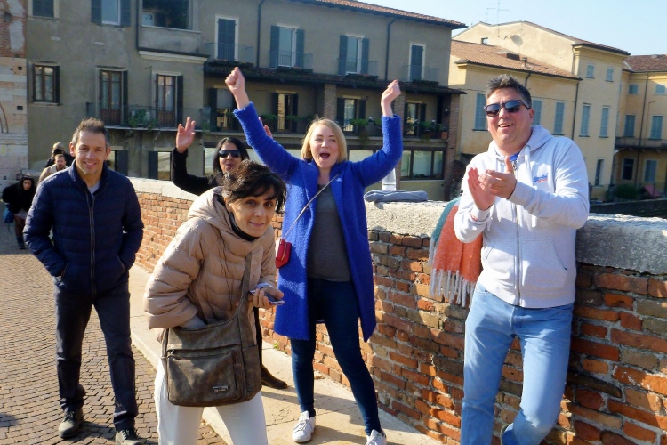 Vor uns das „Haus der Julia“ mit dem berühmten Balkon. Sogar mein indischer Kollege Ganesh hat, wie ich nun weiß, Kenntnis von Shakespeares dramatischem Werk. Hätte ich ihn früher daran erinnert, dass Verona die Stadt von Romeo und Julia ist, wäre er wahrscheinlich mitgefahren. Die Liebesgeschichte zieht halt mehr als die Erwähnung eines römischen Amphitheaters aus dem Jahre 30 n. Chr. - den 10 k hätte Ganesh sicher auch geschafft.